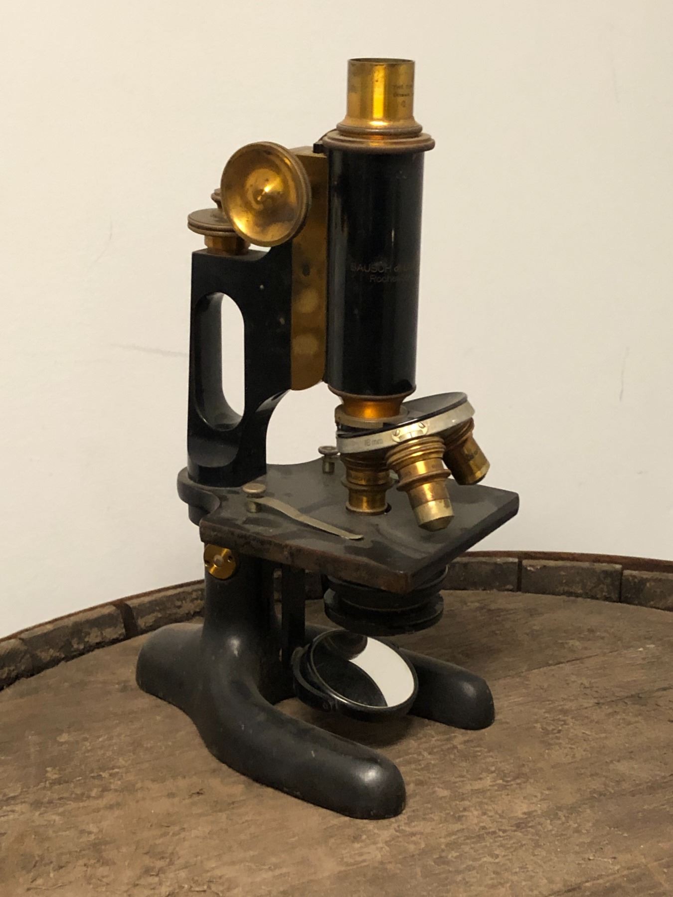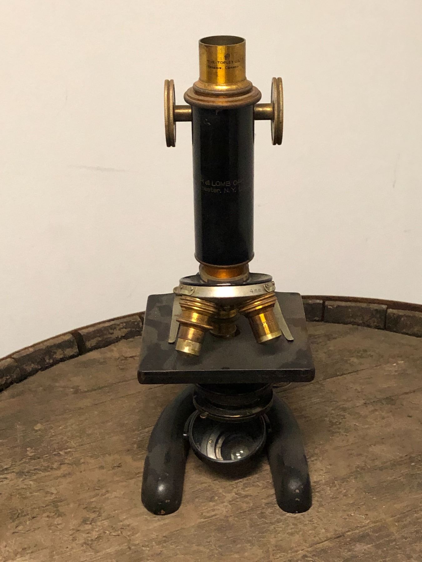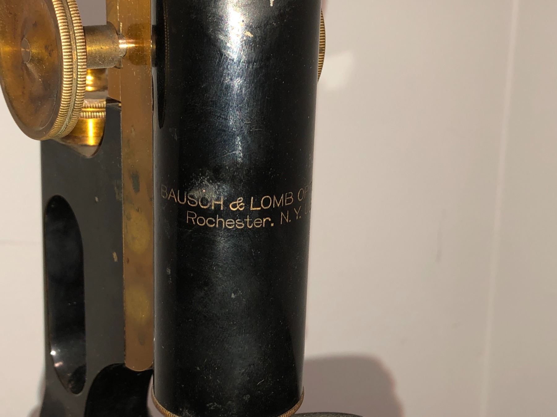 Bausch & Lombs - optical antique brass microscope - approx 11" tall