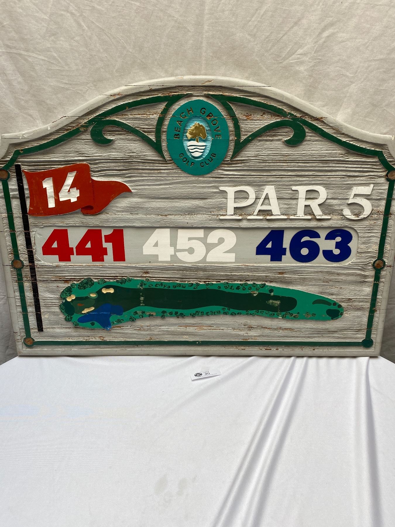 Beach Grove Golf Club Wooden sign Hole 14 par 5 Nicely hand Painted Local Pickup