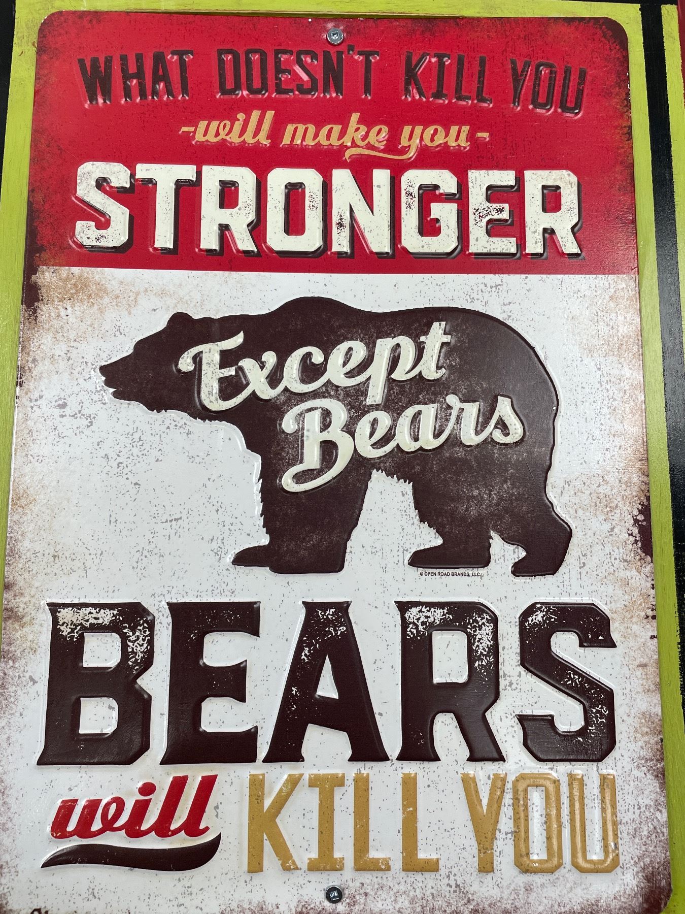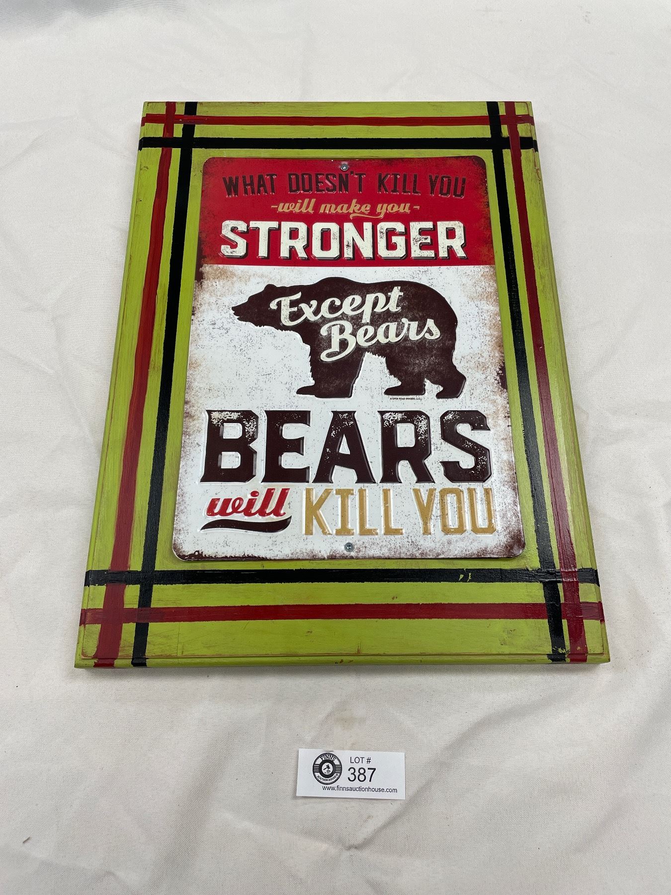 Bear Sign Purchased From Dees Antiques N Antiques Metal Sign Mounted on Hand Painted Cabinet Door