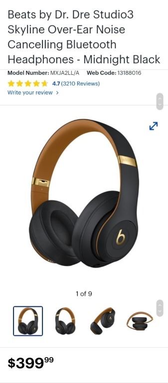 Beats by Dr. Dre Studio3 Skyline Over-Ear Noise Cancelling Bluetooth Headphones - Retail $399.99