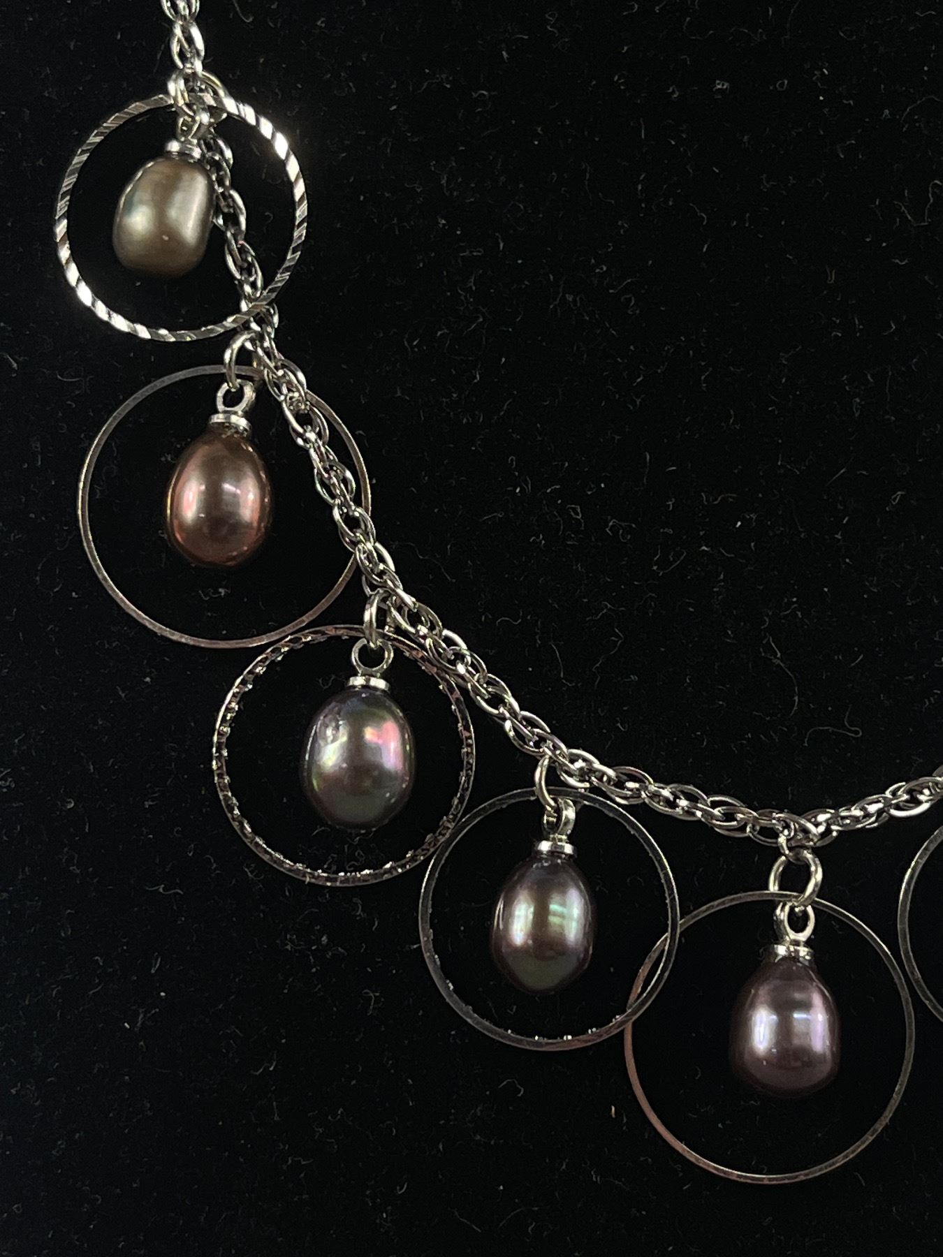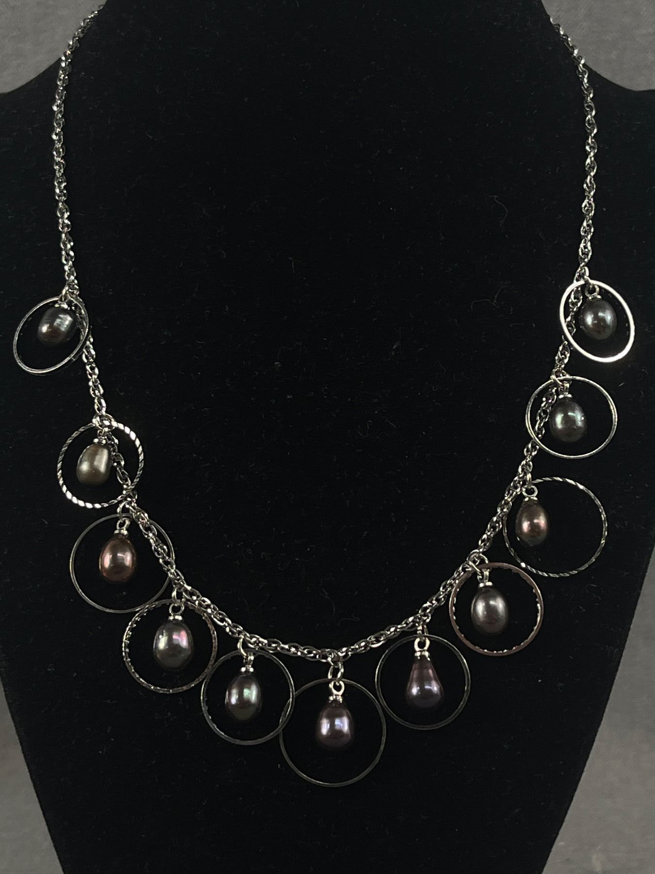Beauriful Genuine Black Pearl Silver Dangling Necklace
