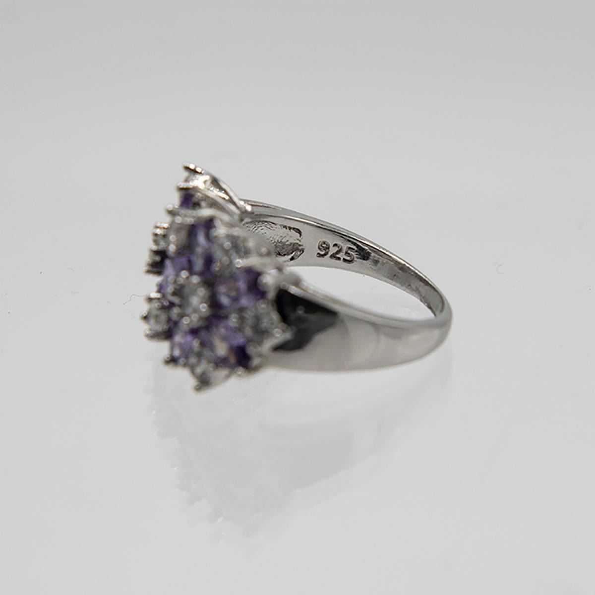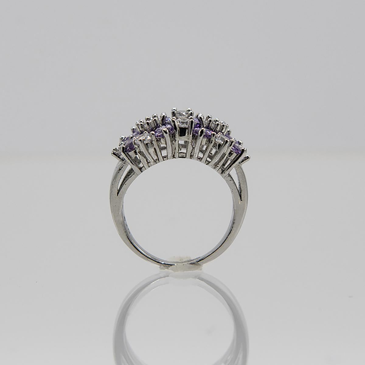 Beautiful Sparkling 11.5 Ct. Diamond and Amethyst Ring.These lab created gemstones are near flawless and burst out with a dazzling aray of colors. Mounted in 14 Kt White Gold over solid .925 stamped sterling silver. Size 7. 26 Cttw or 5.2 total grams. This ring is pretty !