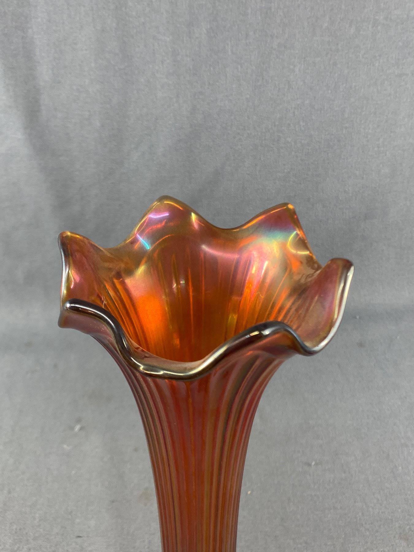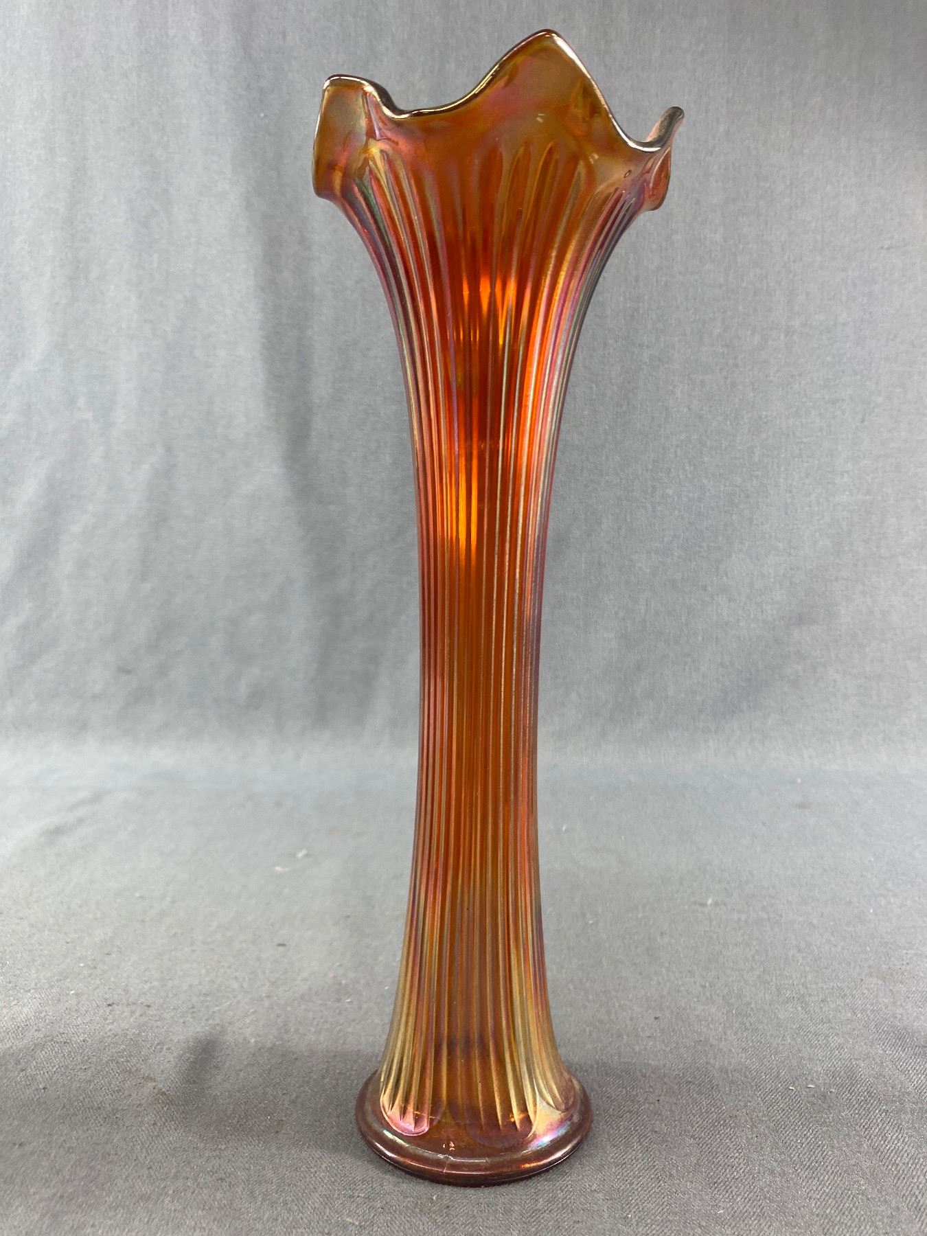 Beautiful 12" H Vintage Fenton/Carnival Irrescent Amber Colour Glass Vase