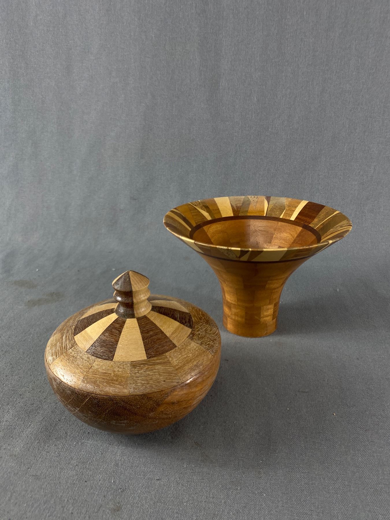 Beautiful 2013 Inlayed Wood Art Nut Bowl Signed By Artist & Amazing In Lay Wood Art By Anel Duboue Signed 2007