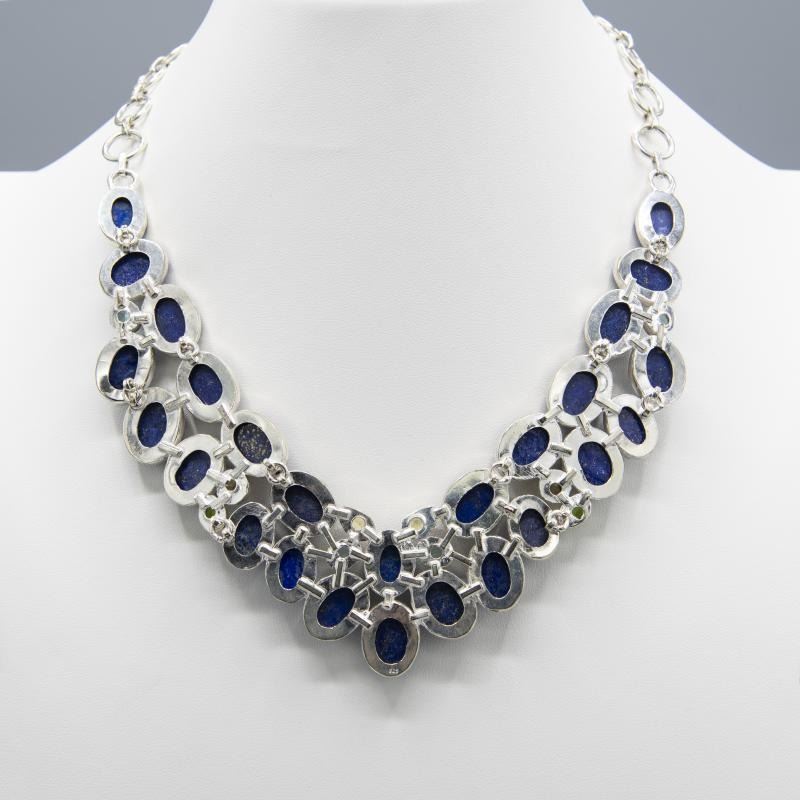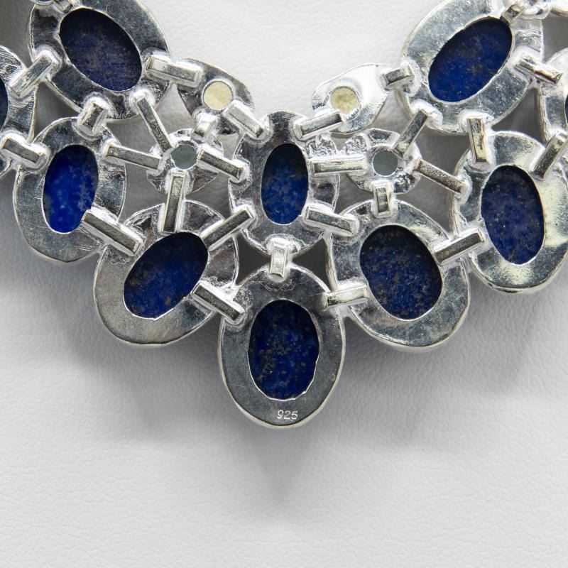 Impressive High-End 265 Ct Natural Blue Lapis Lazuli Necklace. These mined from the earth gems are highly polished with a fine bright luster. This lapis necklace is adorned with the highly desired gold pyrite accents. Mounted in solid .925 sterling silver and accented with natural sky blue topaz and citrine gemstones. 18 " long.465.5 Cttw. or approx. 60 Total Grams.