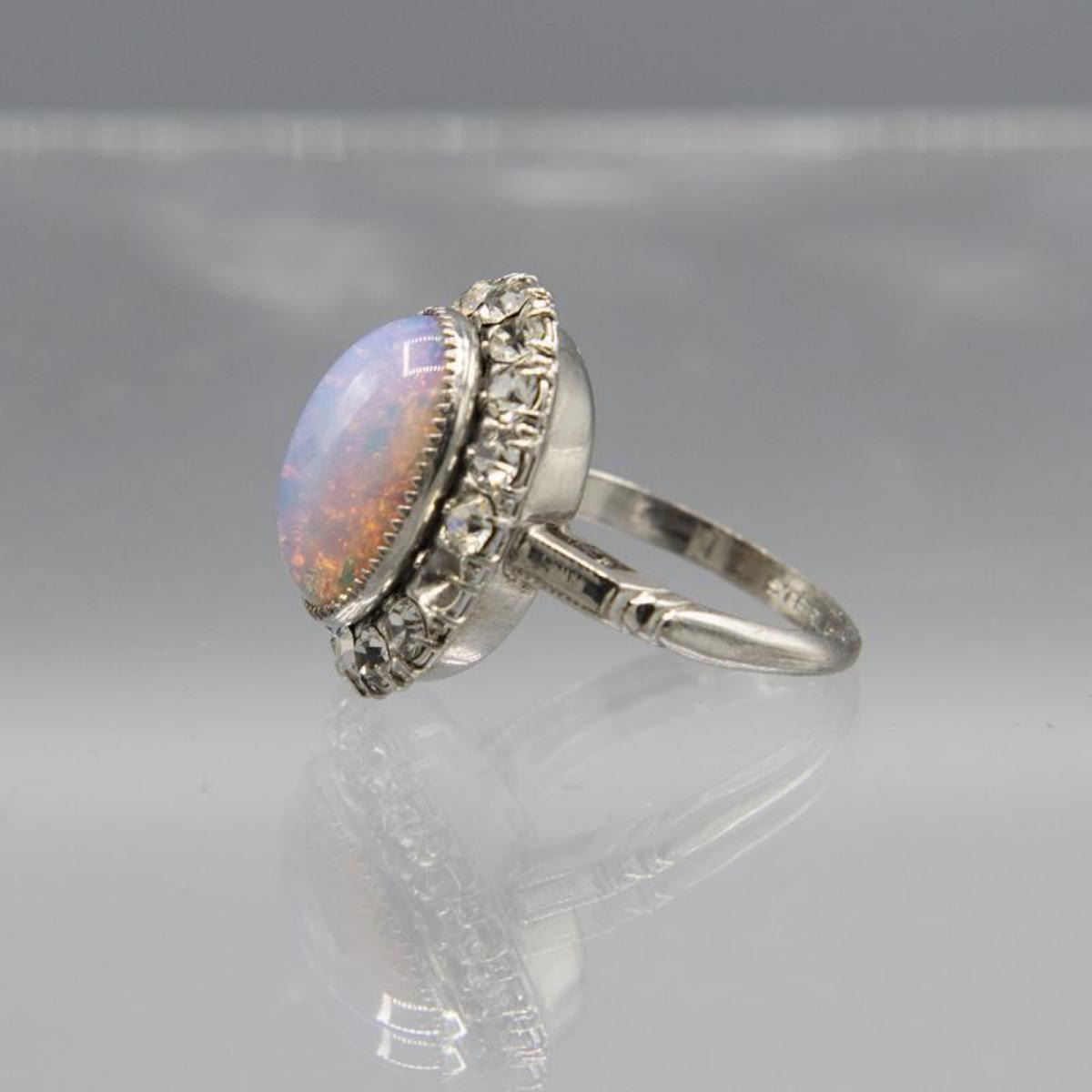 Beautiful 5.5 Ct Color Play Welo Opal Ring.This Lab Created Welo Opal is a cabochon cut measuring ,approximately 8 x 12 mm.,Mounted in solid stamped .925 sterling silver. The incredible color play of this opal bursts out but not limited to flashes of neon green, red, blue , pinks and orange. Incerdible brilliance and high luster. Sizer 6 and ready to be worn. Total Gram Weigt Is 4.5 Grams. Simply Fabulous To Gaze At.