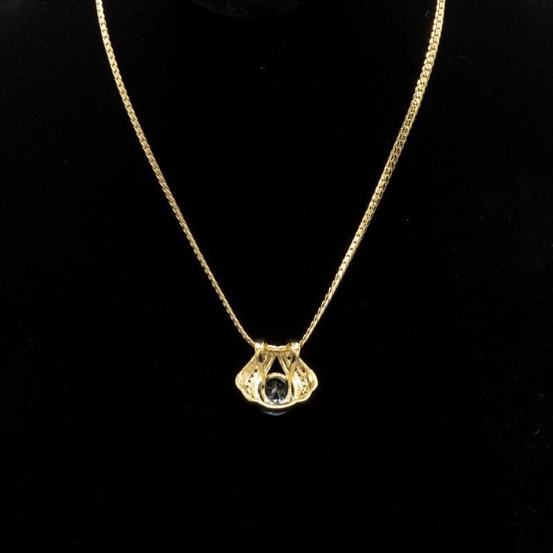 6.12 Ct Swiss Blue Topaz & Diamond Pendant. VVS 1 Near Flawless Faceted Oval Cut Measuring 12 x 10 mm.100 % Natural.Unheated.Treatments: None.Includes 16 Natural Faceted Diamond Accent Stones. Mounted in18 Kt. Gold Overlay.Length is 18" weighing 12.9 Total Grams.Get Ready For The Compliments On This One.