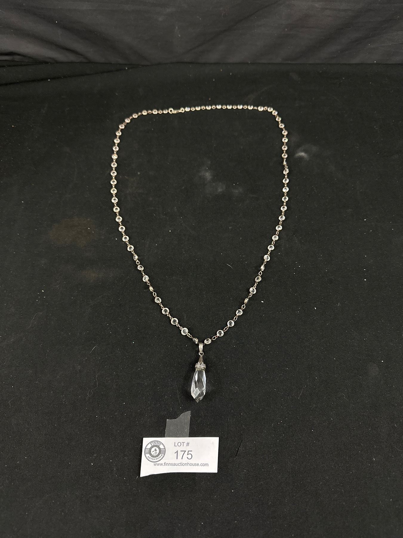 Beautiful .925 Silver Chain w/Crystals & Lovely Crystal Pendant (35" long)
