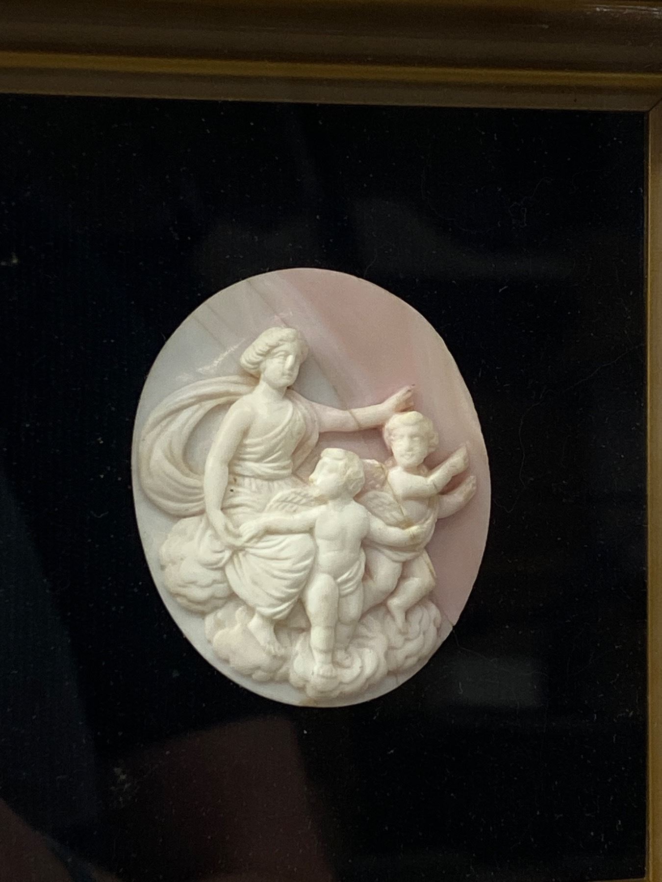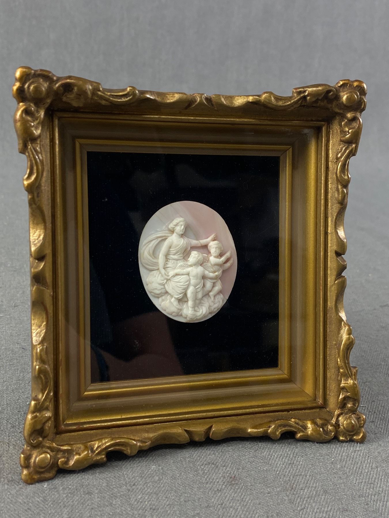 Beautiful Antique Carved Shell Set in Shadowbox Frame