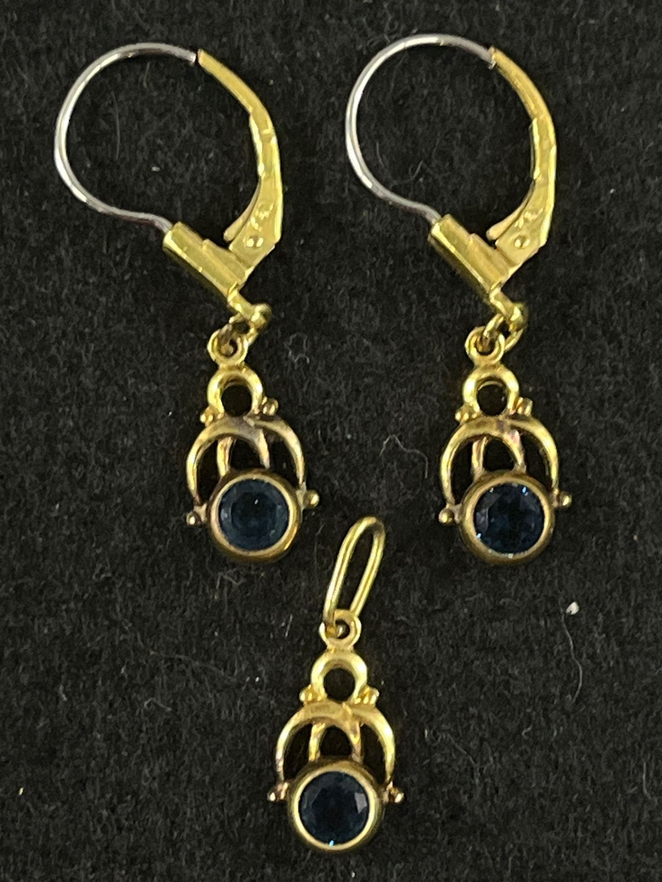 Beautiful Antique Gold Plated with Sapphire Earring and Pendant Set