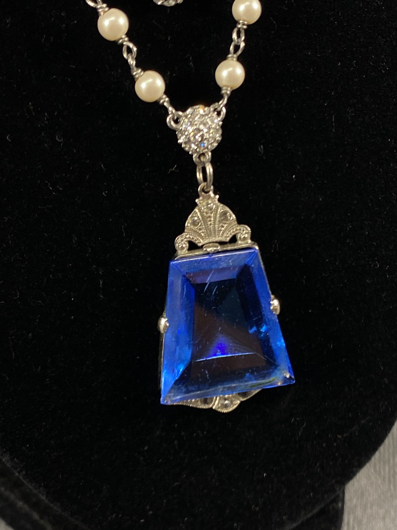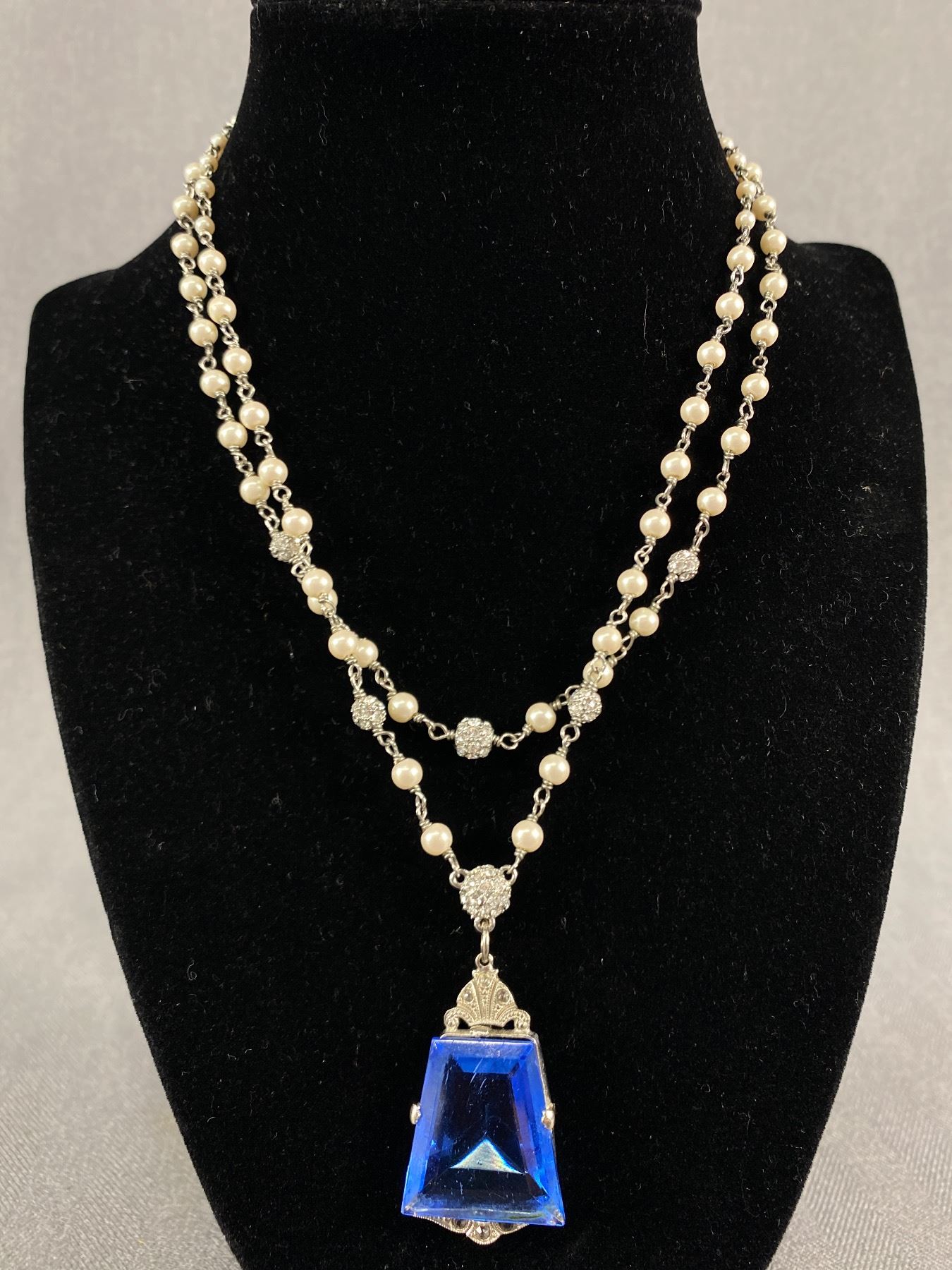 Beautiful Art Deco Pendant on Double Pearl Chain
