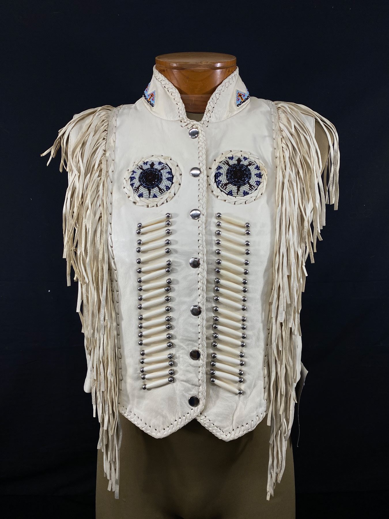 Beautiful Beaded Tassled Leather Gallery Size Large Vest w/Tags.