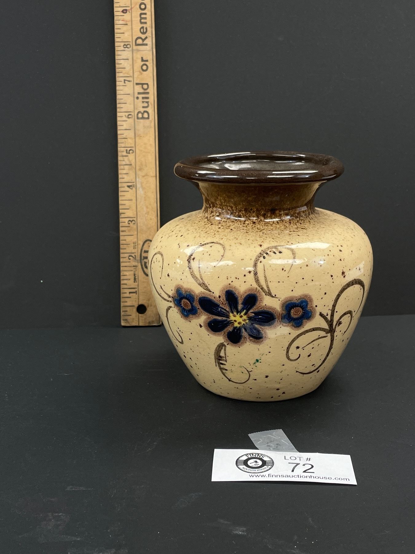 Beautiful Blue Flowers Over Cream West Germany Vase 5.5" Tall