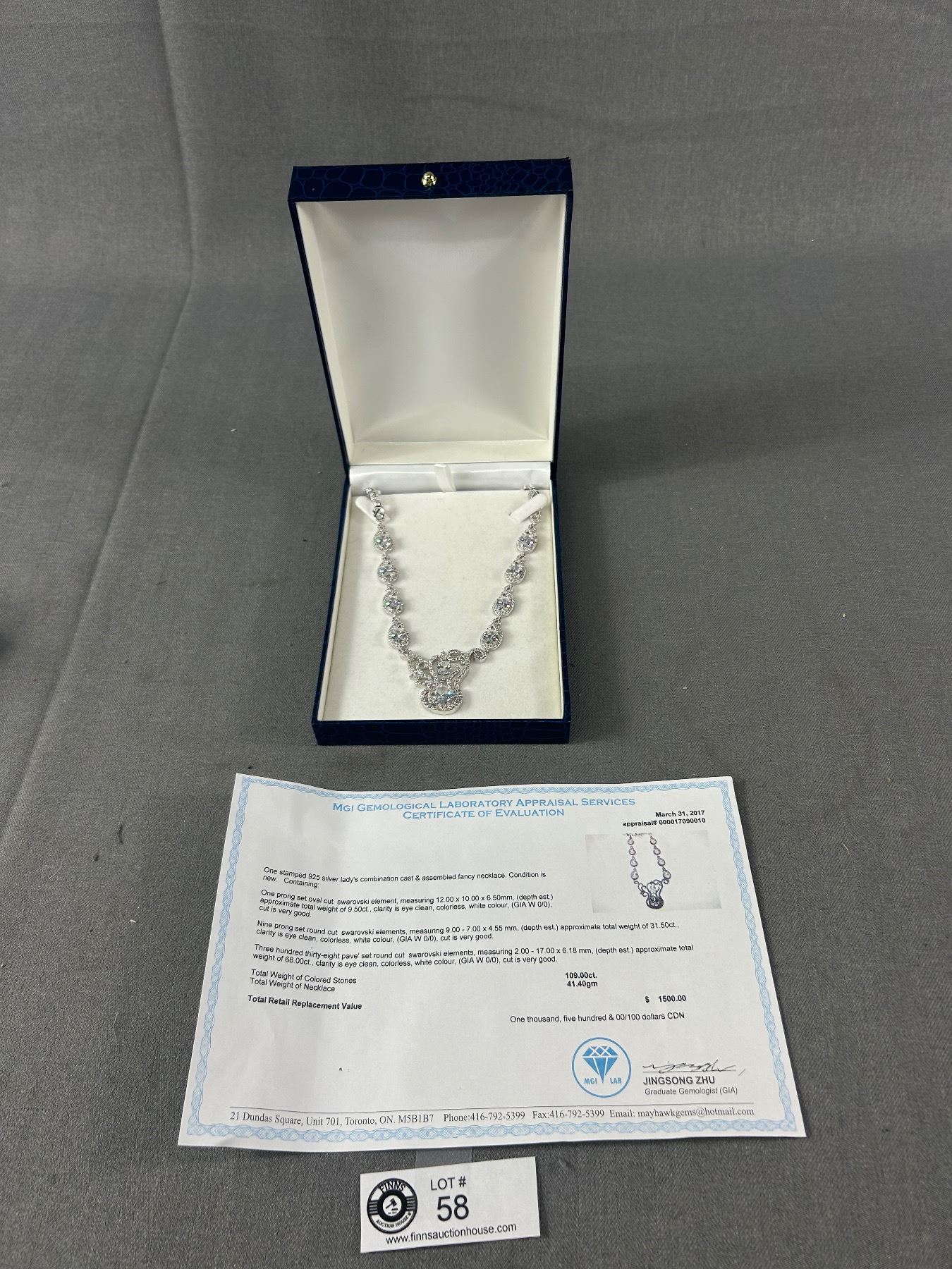 Beautiful Brand New 925 Fancy Necklace With Swarovski Crystals/Elements. With Appraisal and Box
