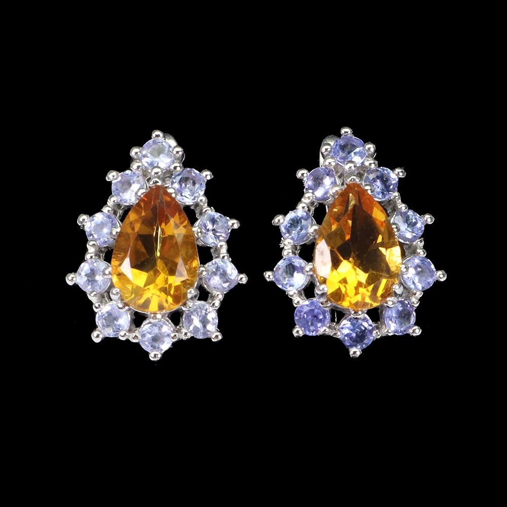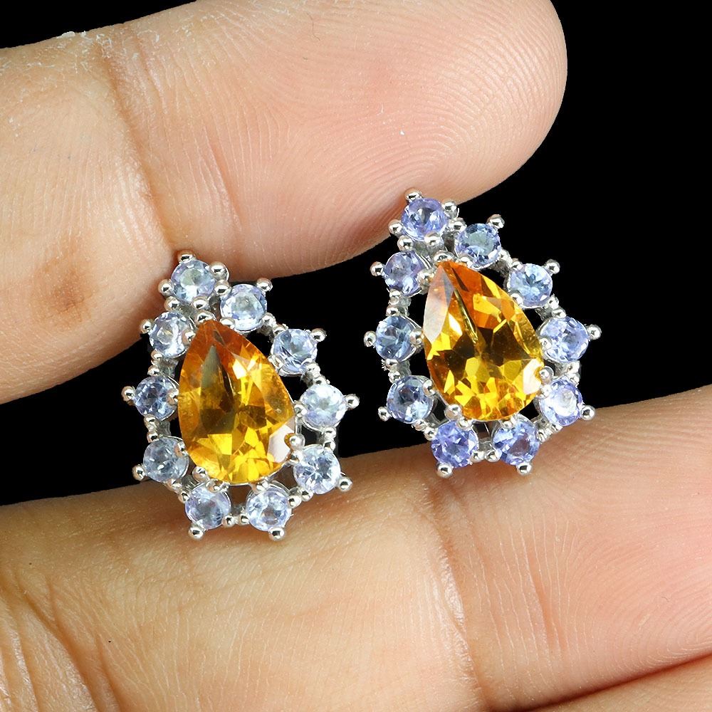 Beautiful CITRINE and TANZANITE Earrings in 14 K Gold Plated 925 Sterling Silver – Appraised Replacement Value CAD 580