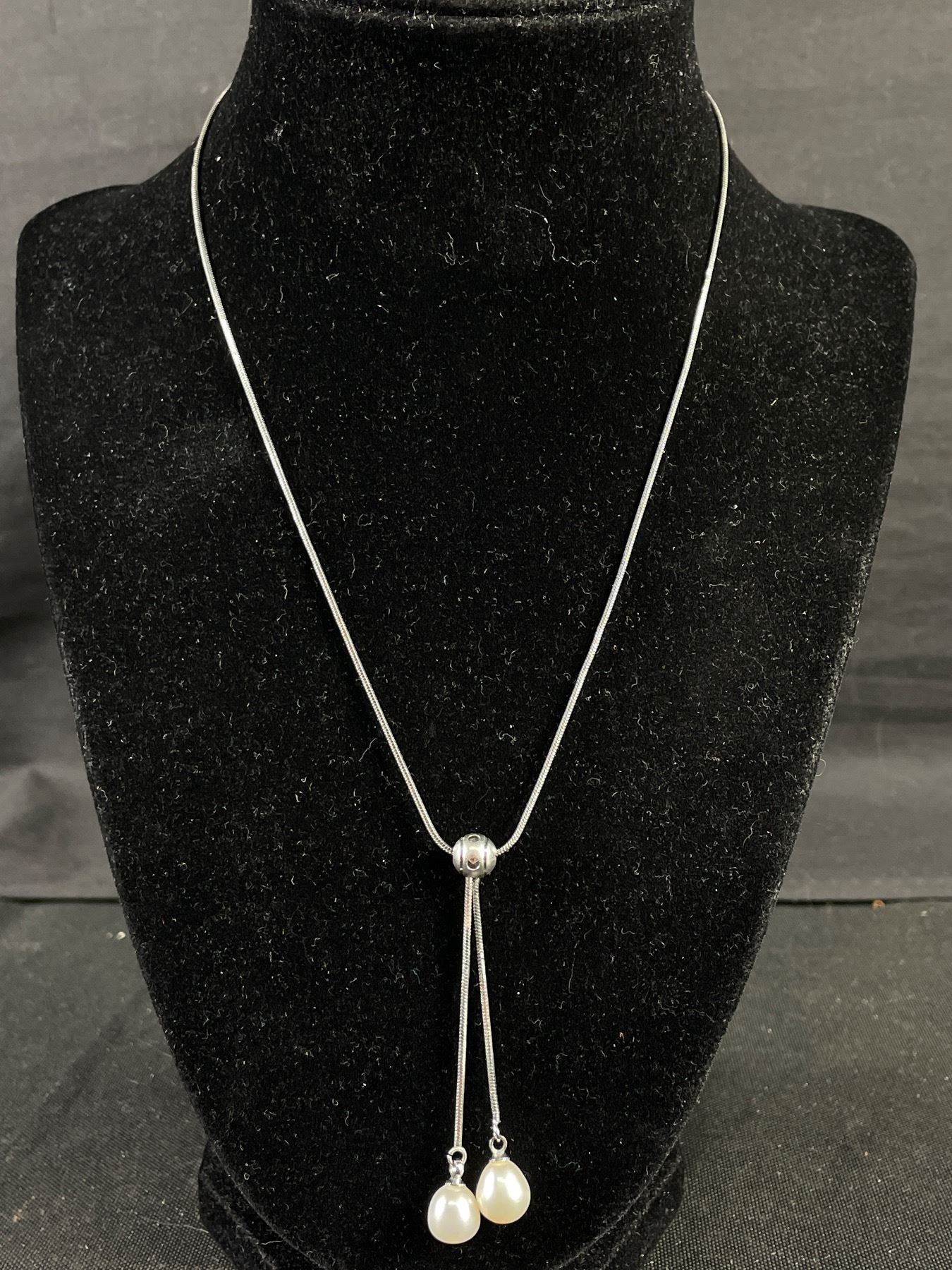 Beautiful Genuine Pearls Dangle Pendant w/ Chain Necklace