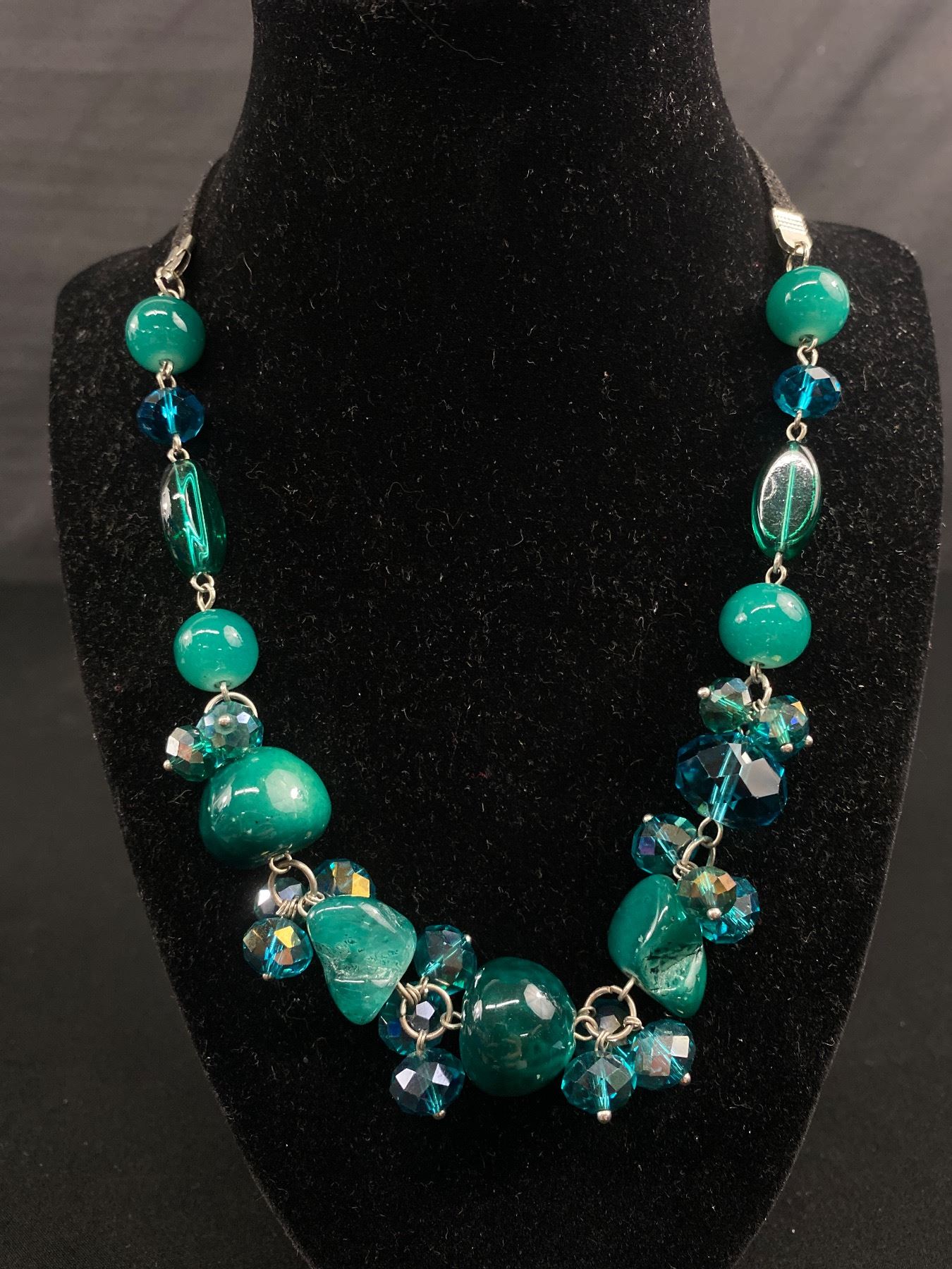 Beautiful Green Glass and Crystal Necklace