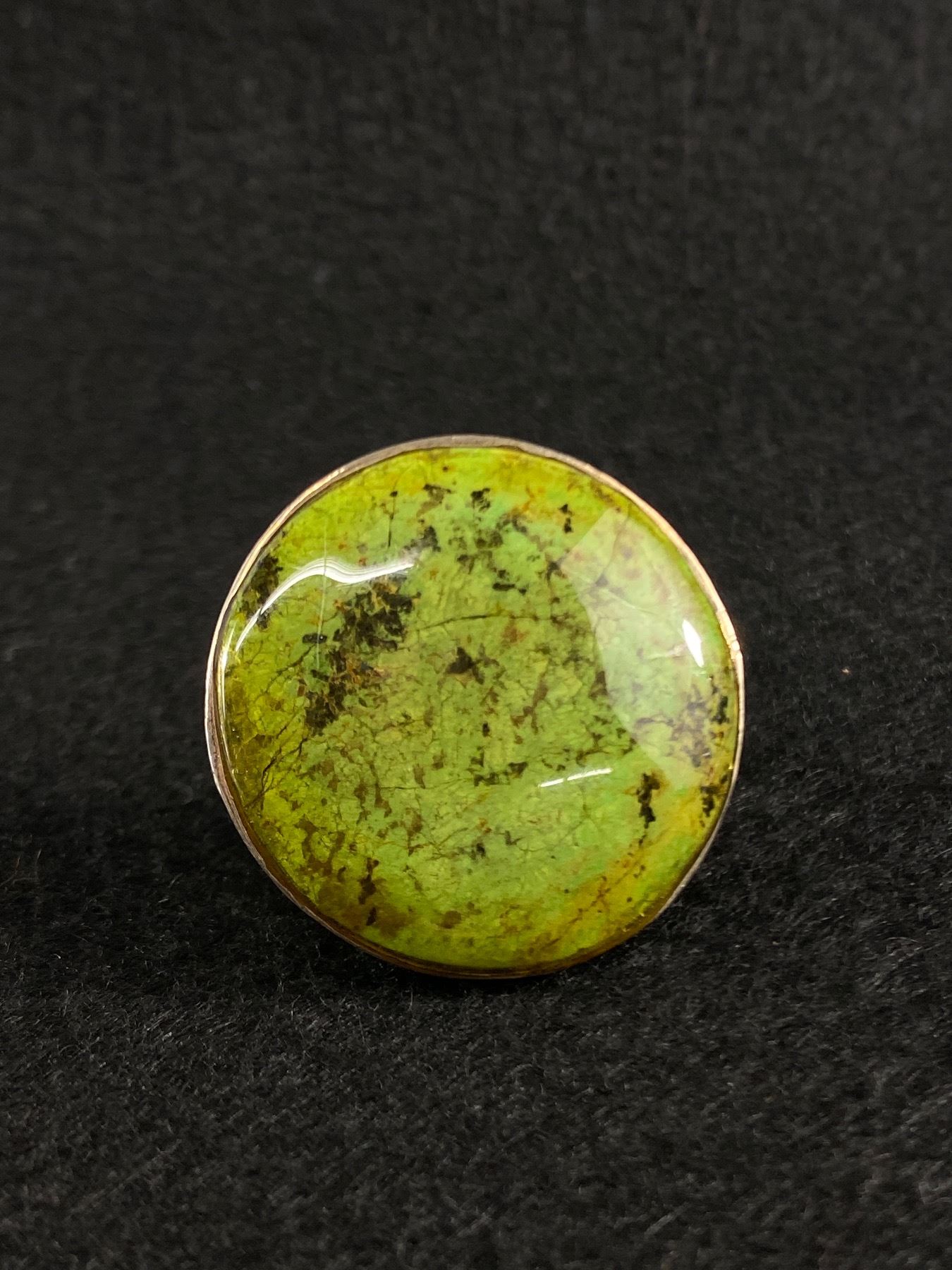 Beautiful Green Opal 1.25 Diameter Sterling Silver Ring Size 6.5 Signed 925 CFJTHAI
