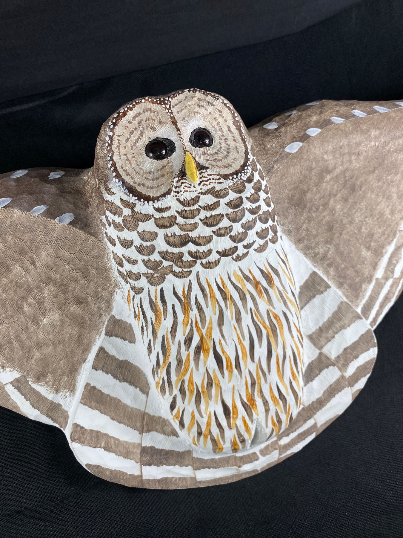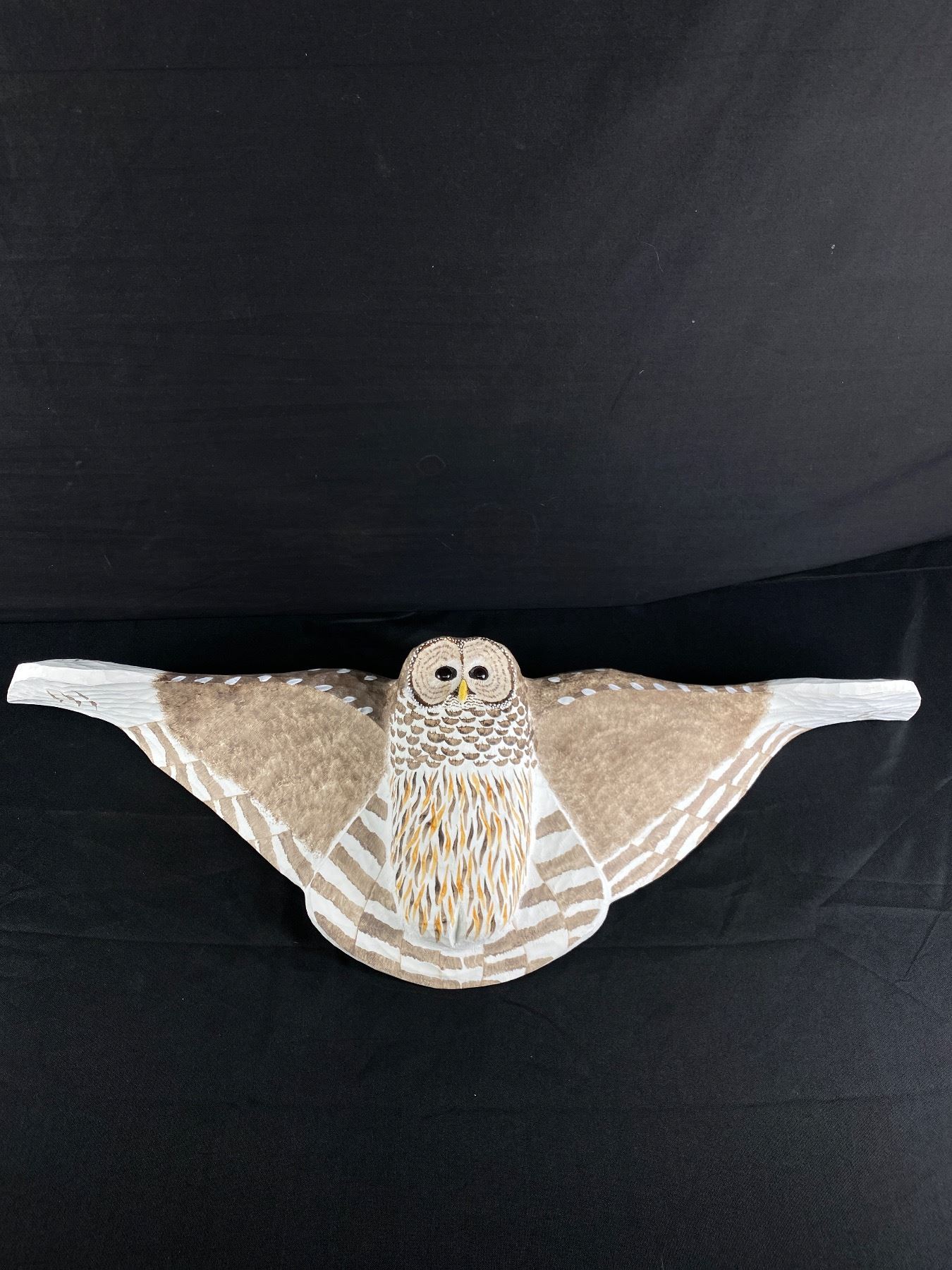 Beautiful Hand Carved & Painted Wood Barred Owl By L. Robinson, Kingston Ont.Approx. 33 1/2" Wing Span
