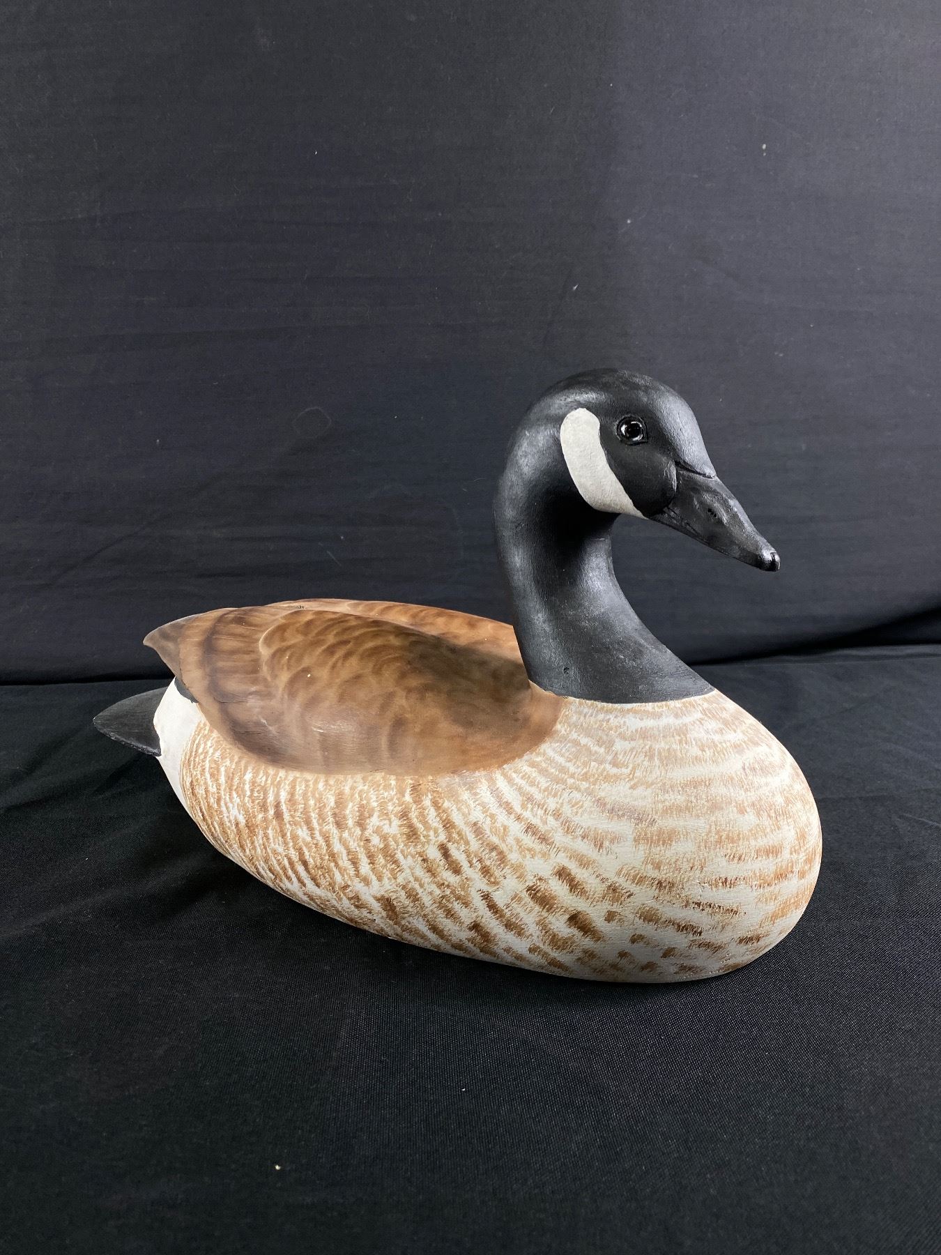 Beautiful Hand Carved & Painted Wood Goose By Hans Lawson, Peterborough, Ont. Approx. 14" L