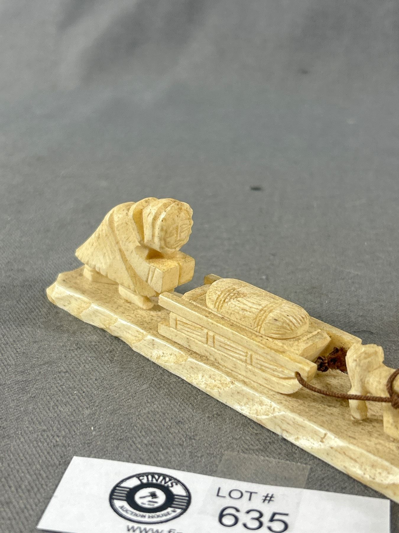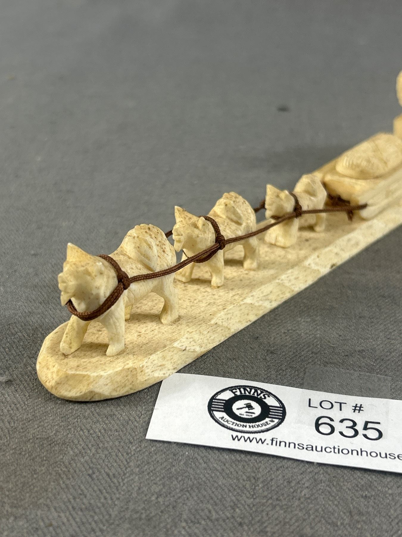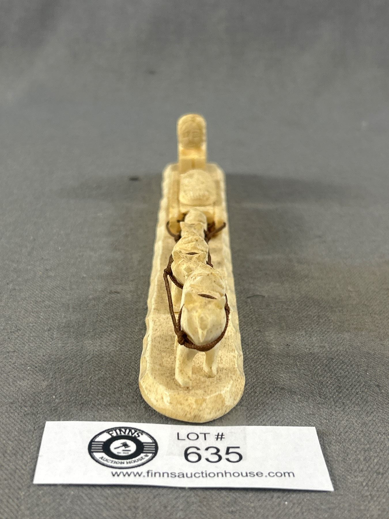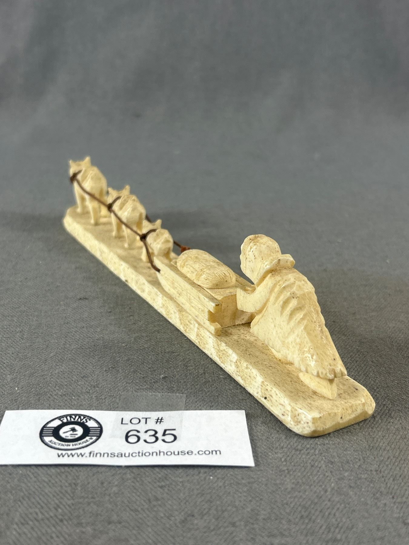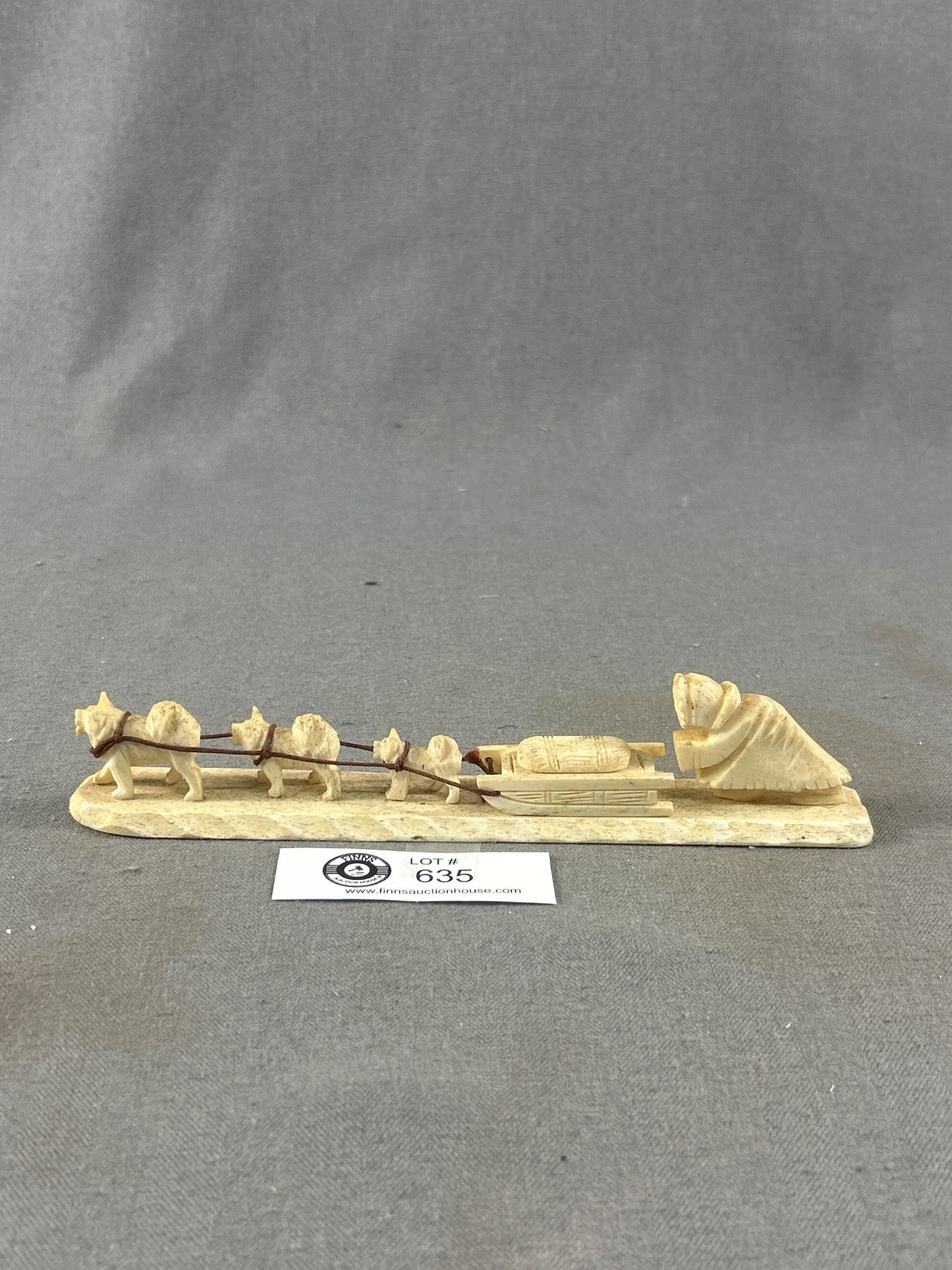 Beautiful Inuit Eskimo Carving of Inuit Family and Dog Sled Team.