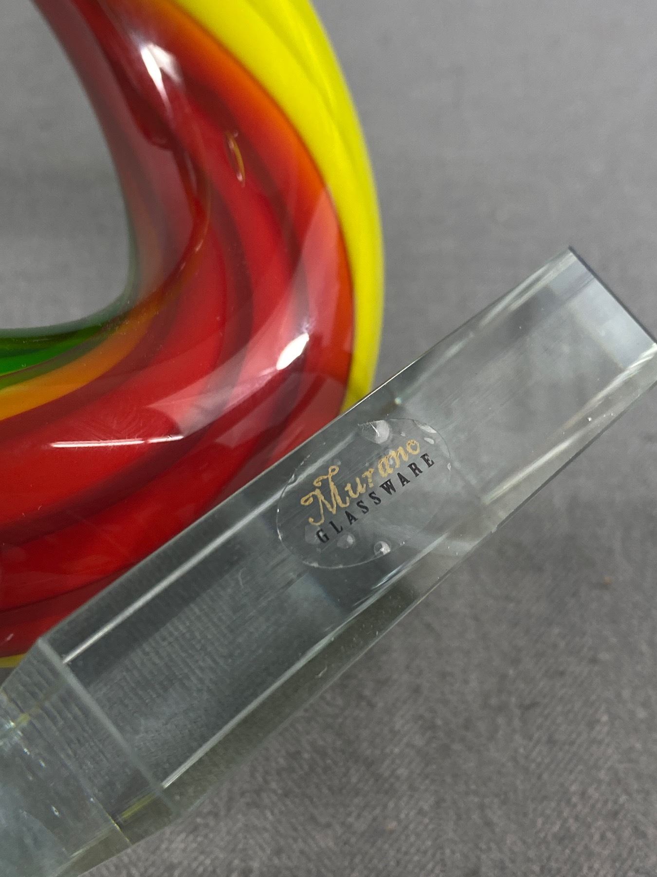 Beautiful Murano Hand Blown Contemporary Glass Sculpture "Two Become One" 12" tall