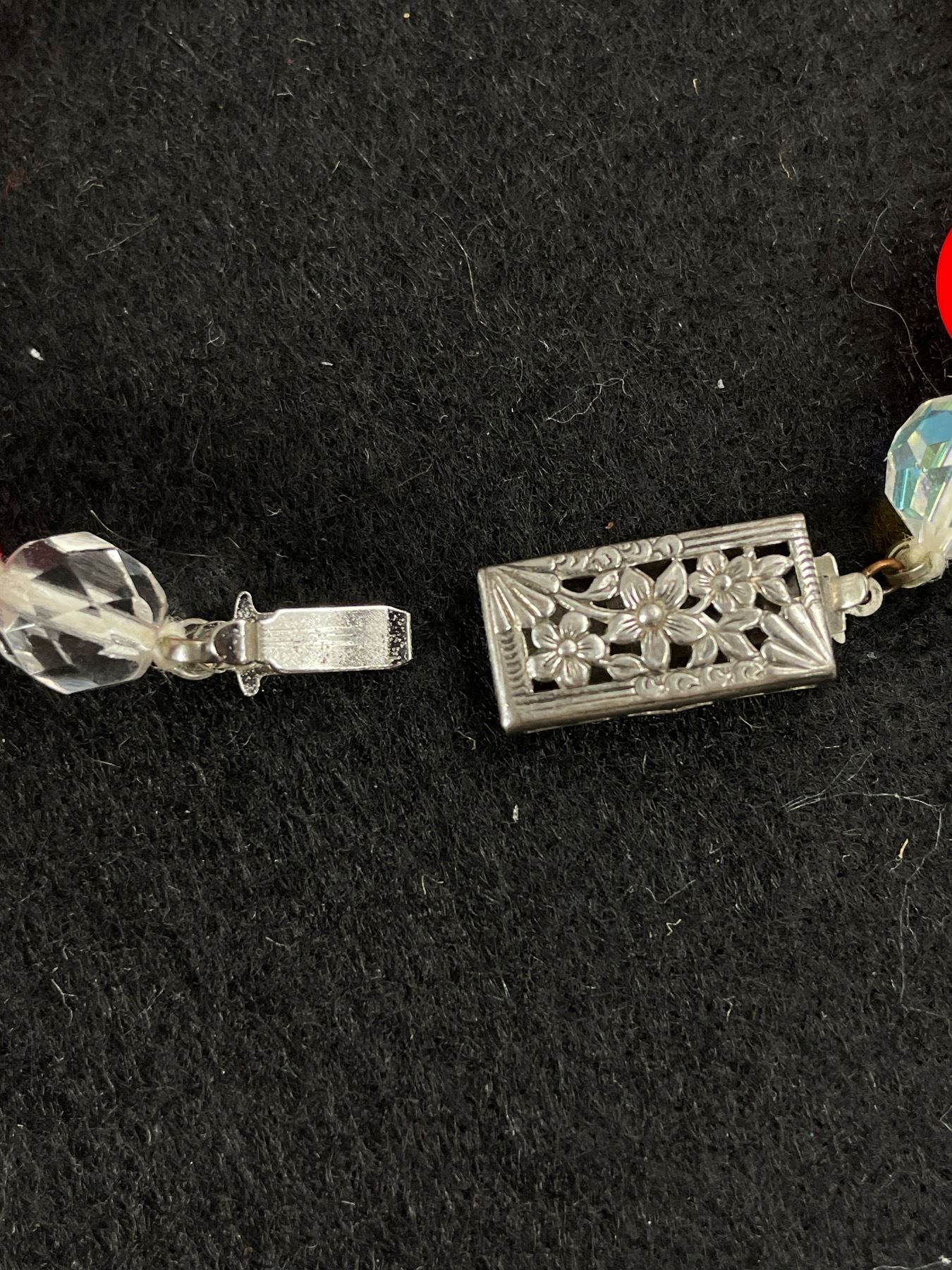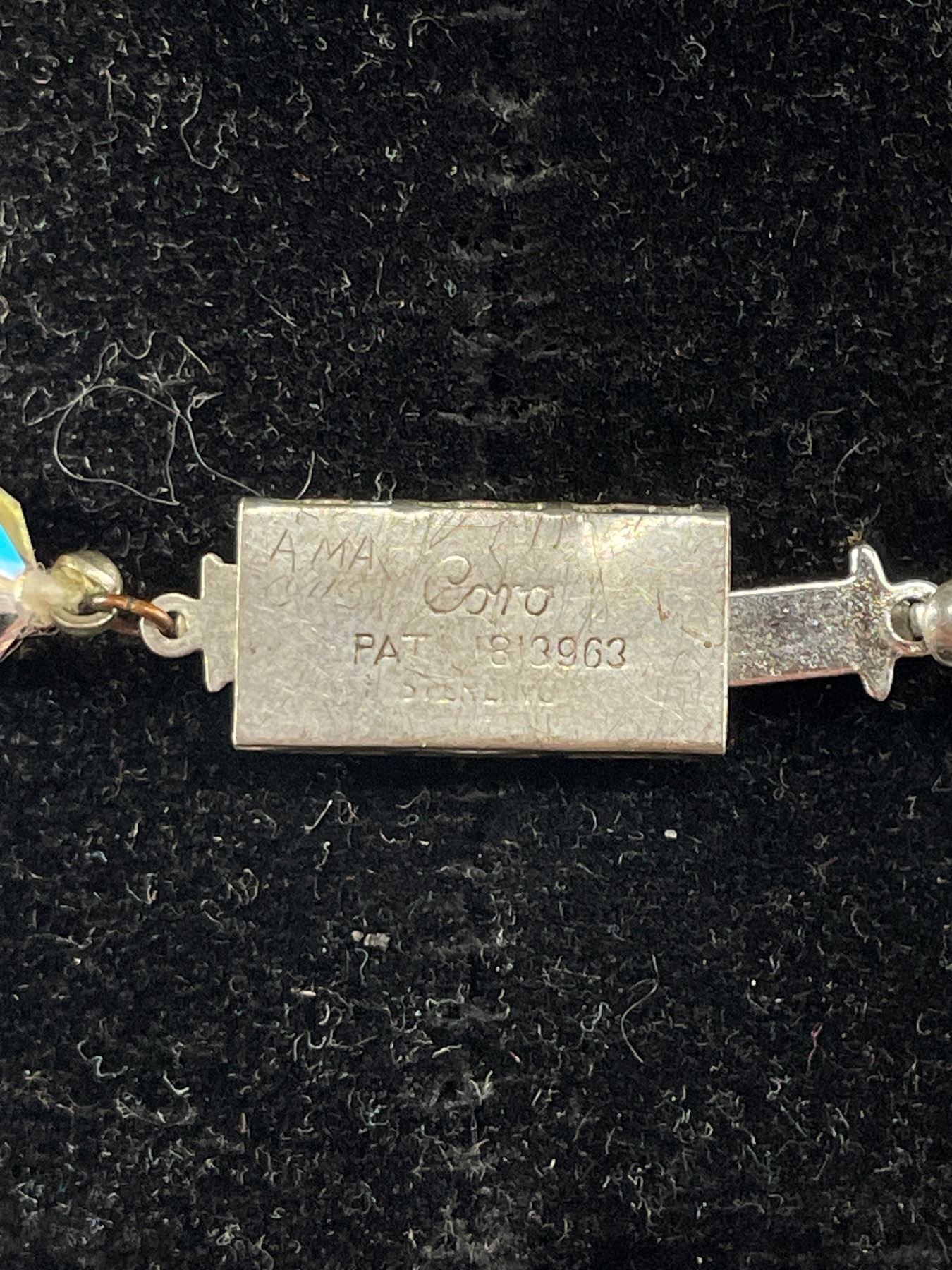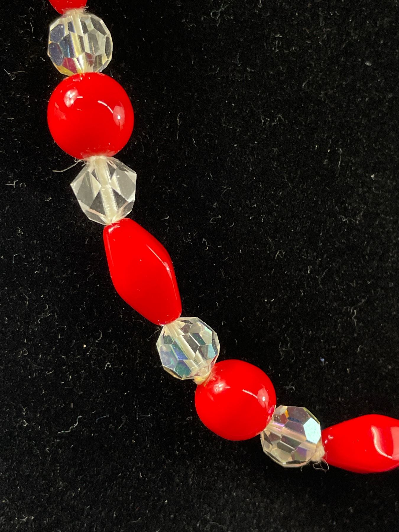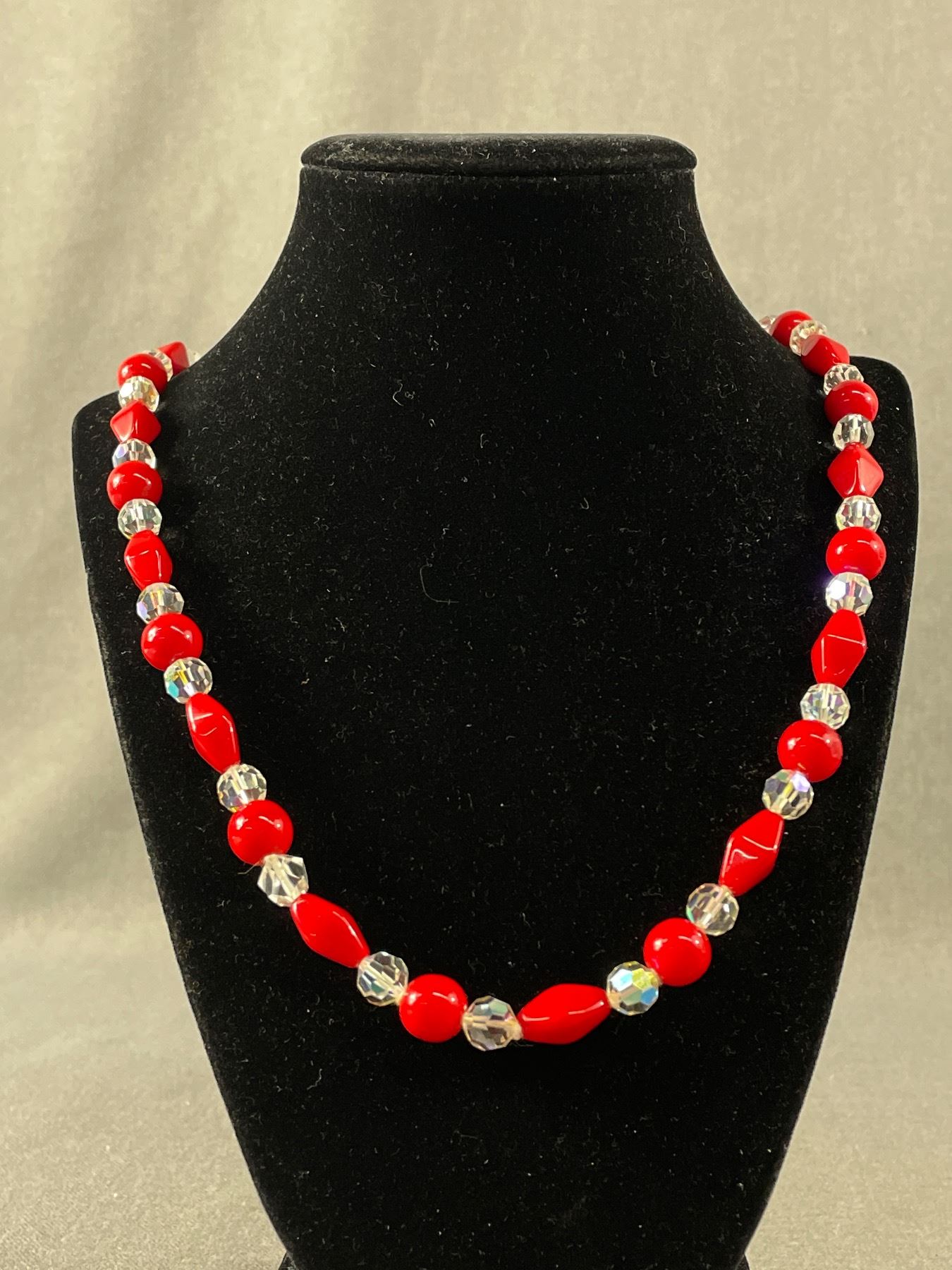 Beautiful Red & Clear Stone Necklace Signed Coro On Clasp