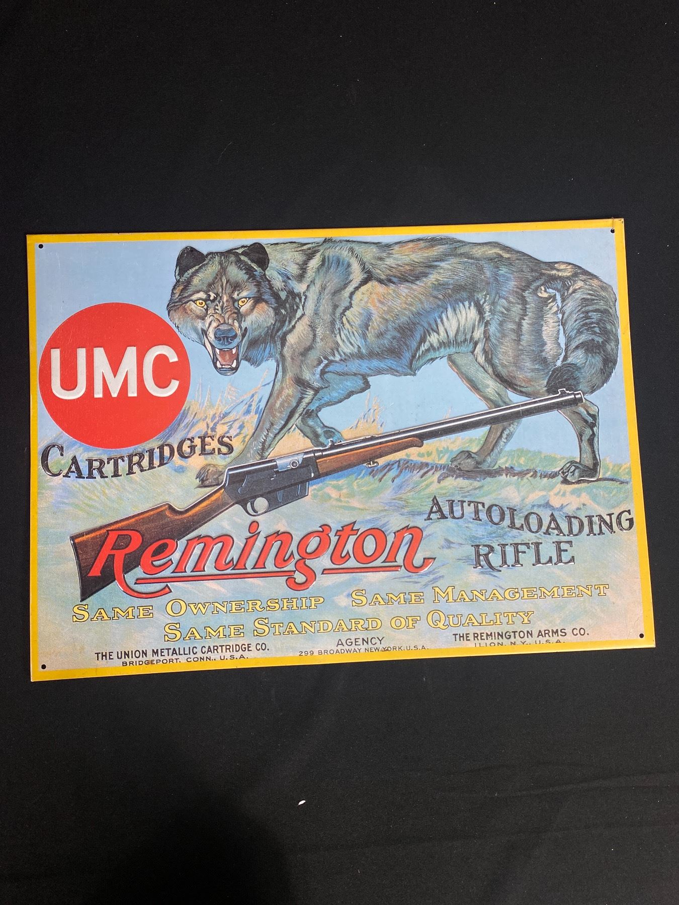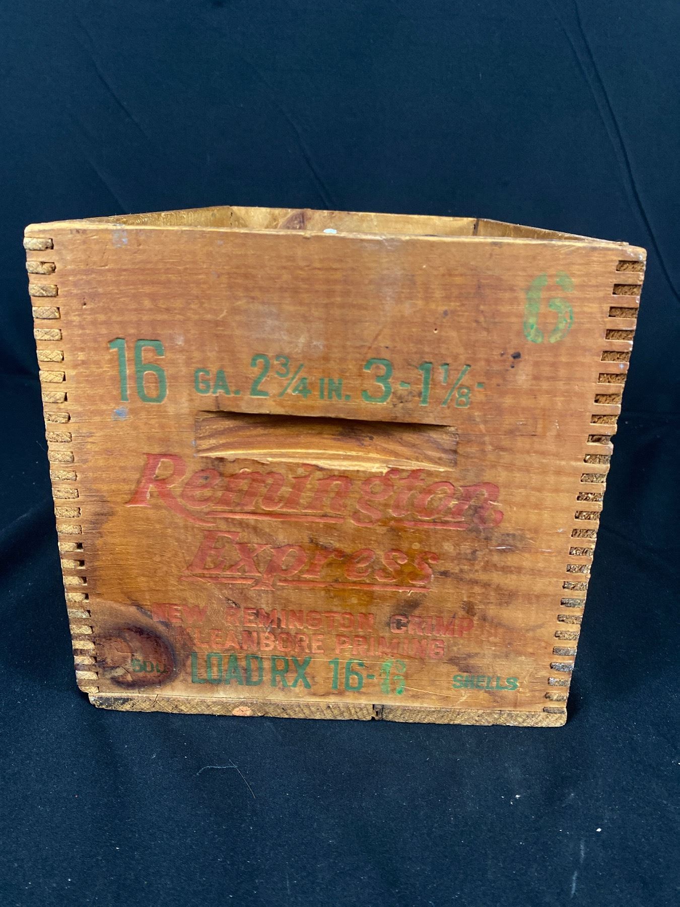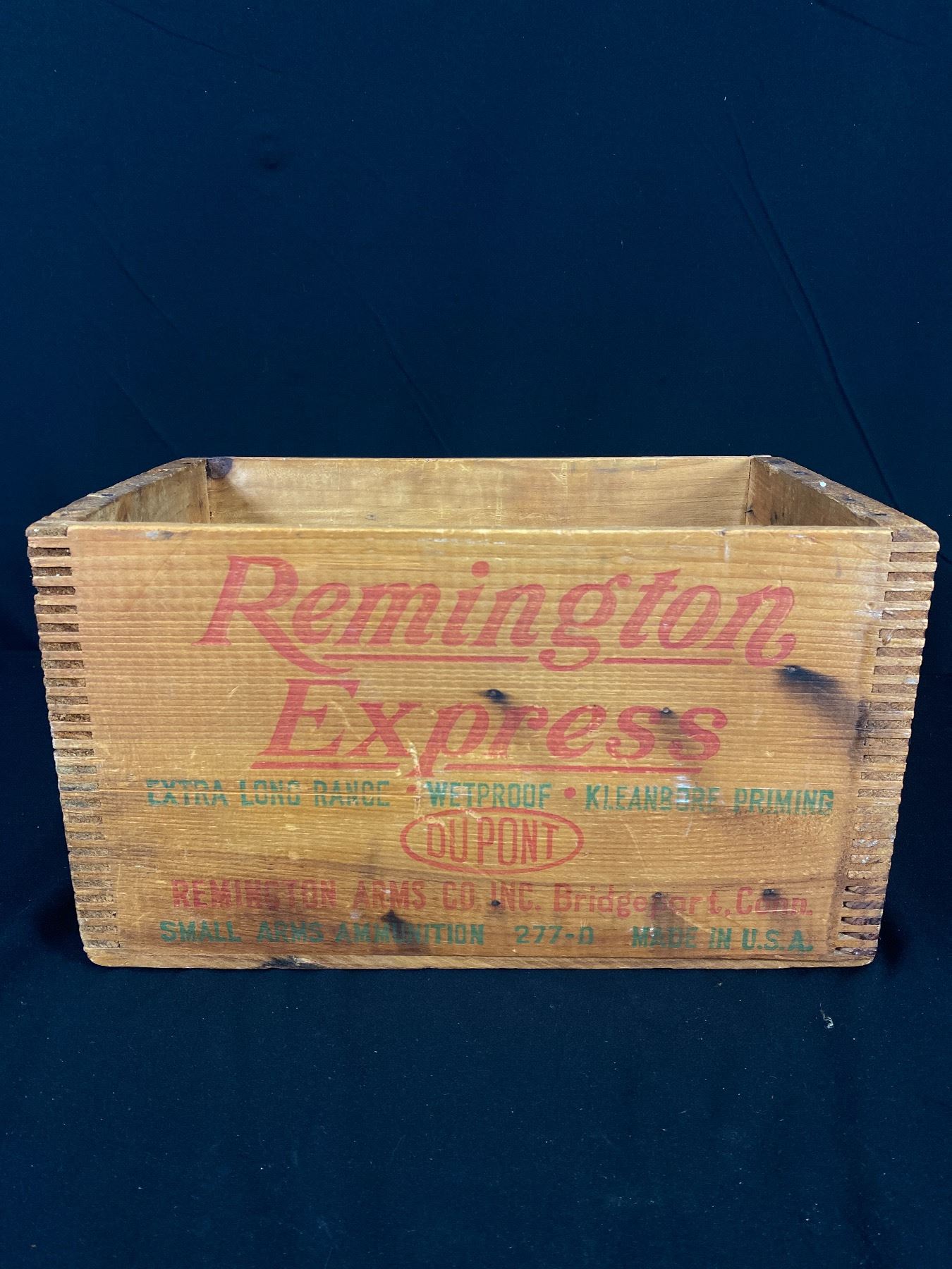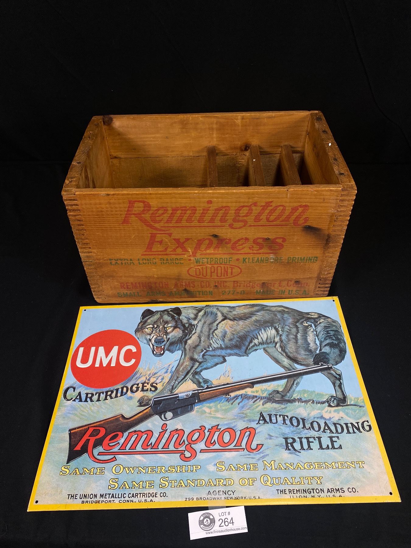 Beautiful Remington Express Finger Jointed Box and Remington Rifle and Cartridges Tin Sign