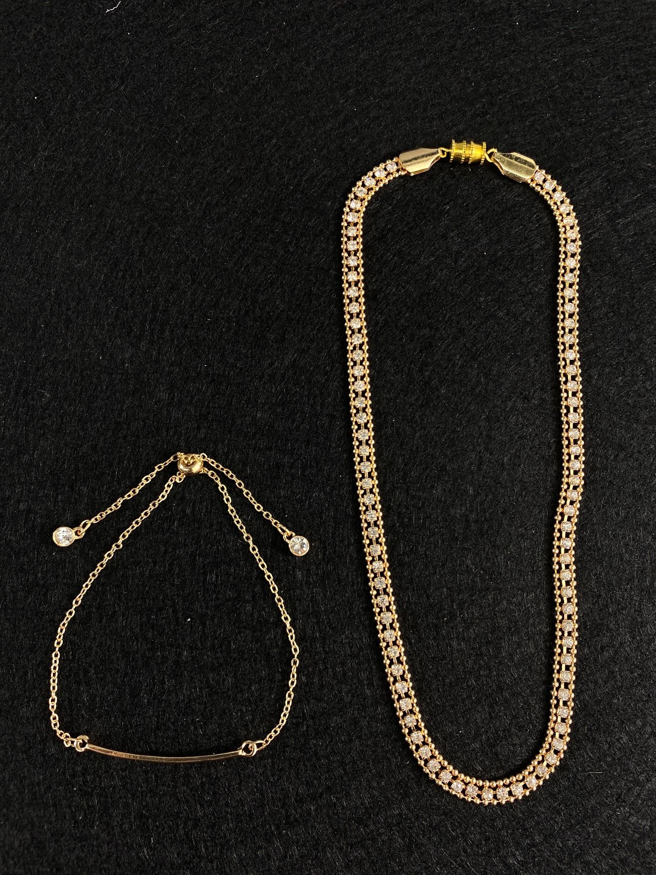 Beautiful Rhinestones Choker Necklace 15" Long and Bracelet w/ 2 Rhinestones