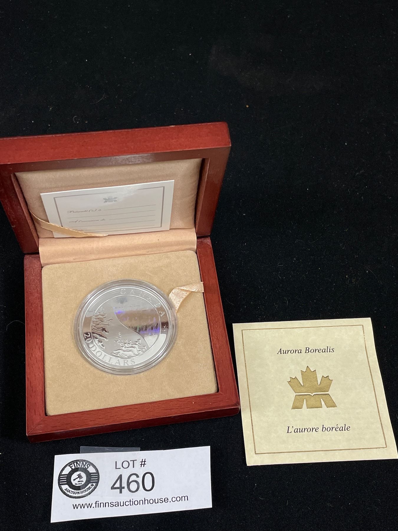 Beautiful Royal Canadian Mint 2004 Natural Wonders 20 Dollar Aurora Borealis 1 oz Fine Silver Holographic Coin