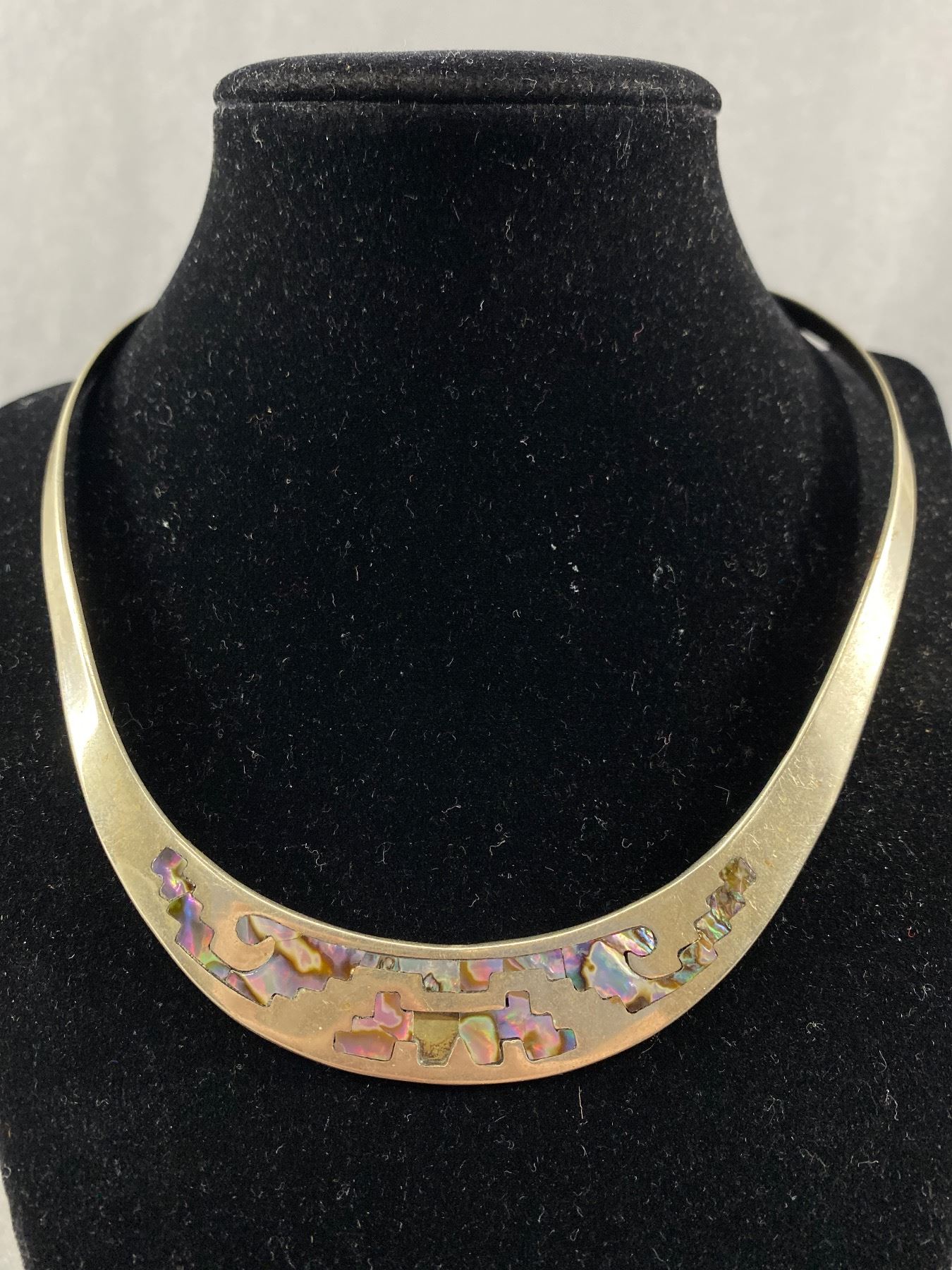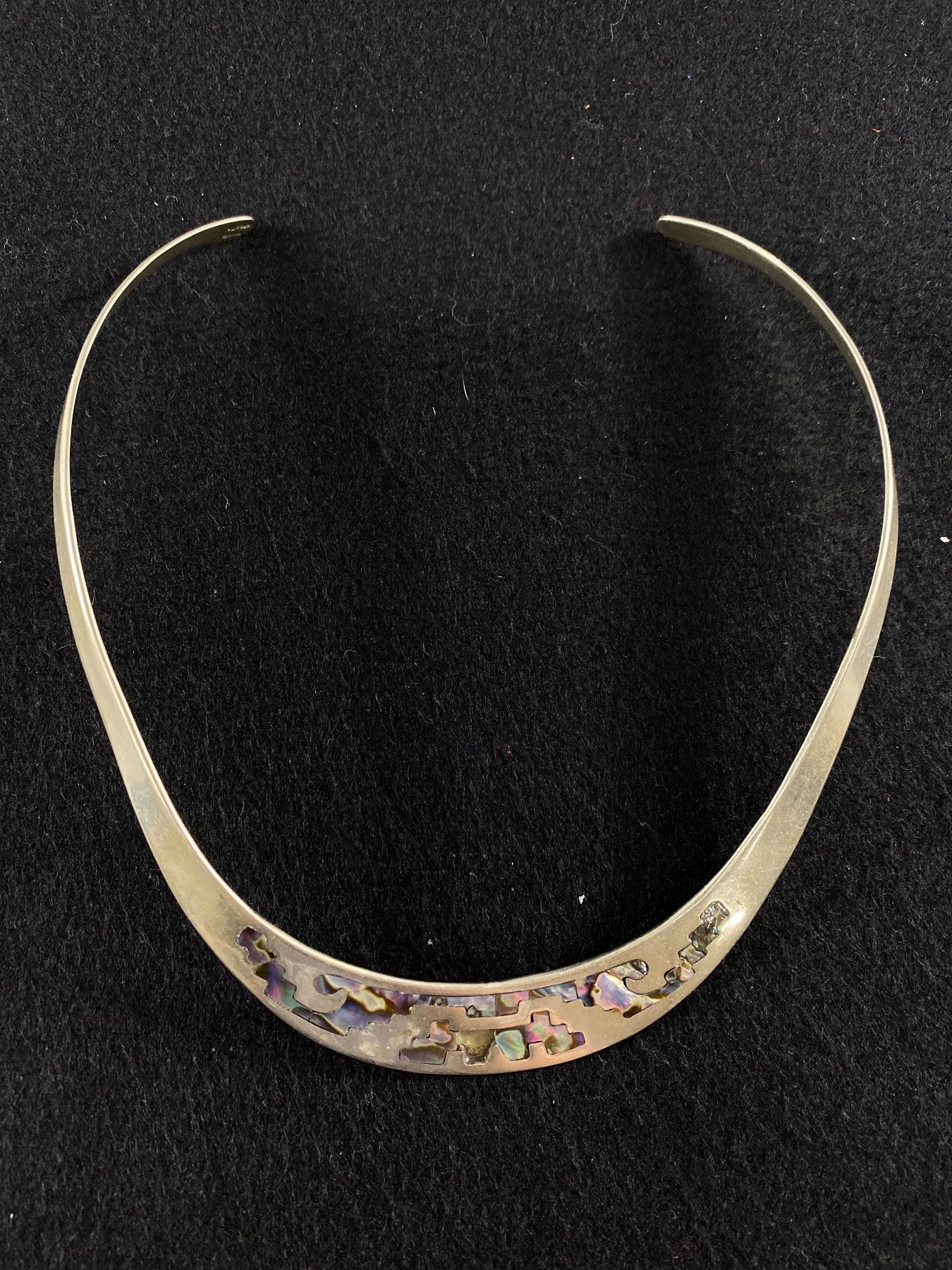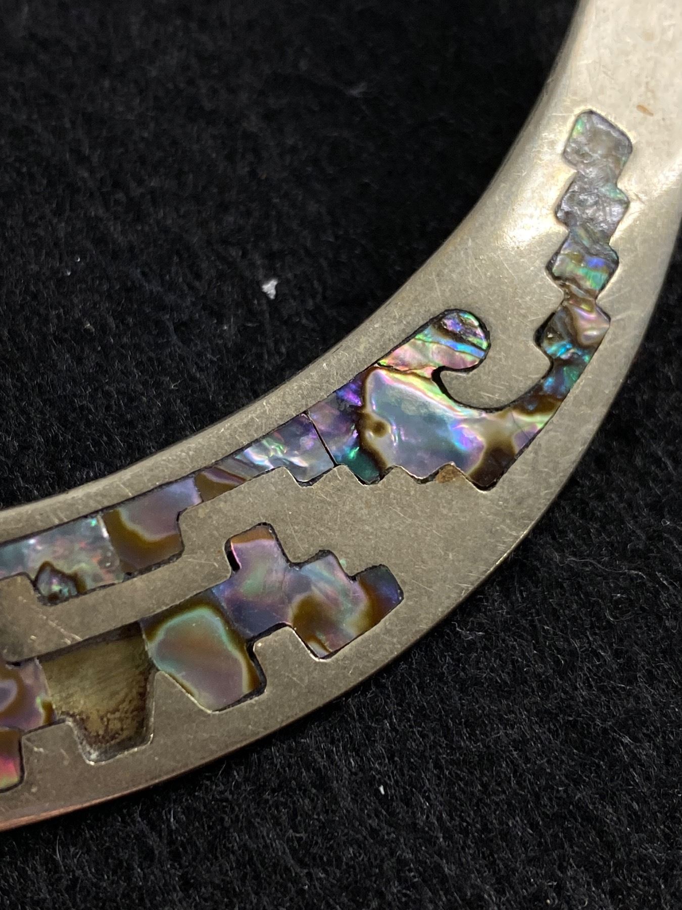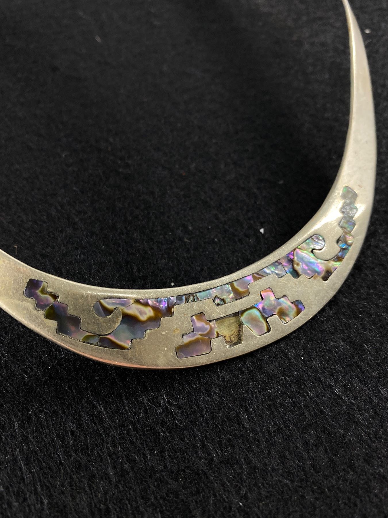 Beautiful Silver Abalone Inlaid Vintage Collar Neckband