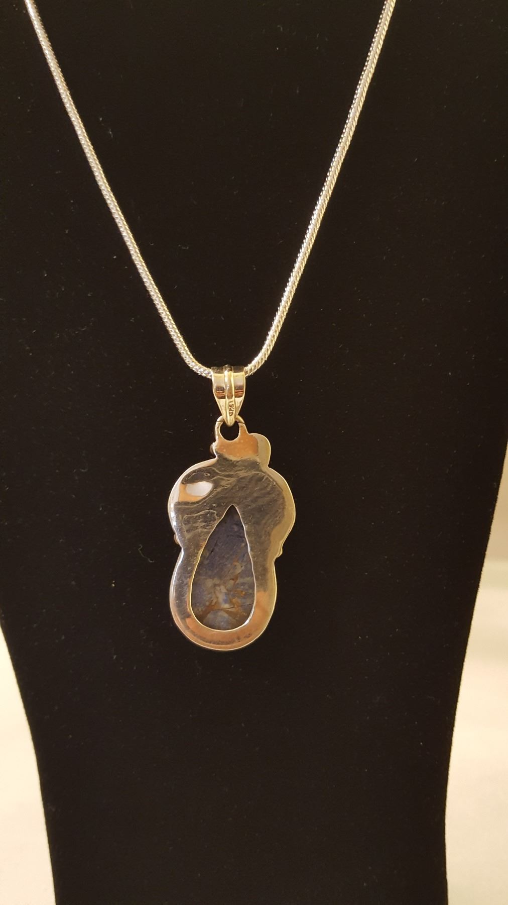 Beautiful Southwest - Afghani Copper Lapis Pendant. Gem Wt Approx 10 ct. Mounted In Elaborately Designed Solid .925 Sterling Silver. Incudes 20 " Chain. Tcw 69.5 or 13.9 Total Gram Wt.
