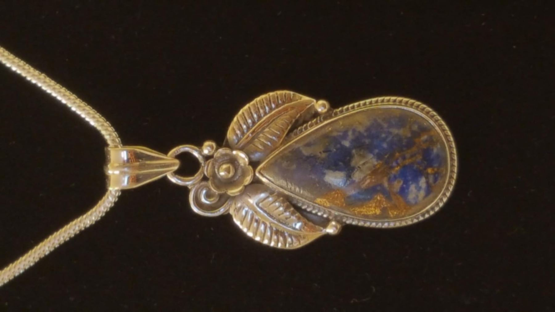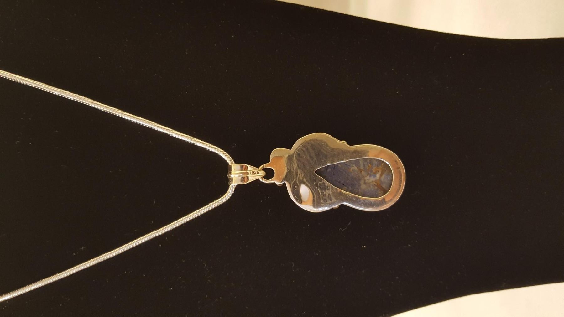 Beautiful Southwest - Afghani Copper Lapis Pendant. Gem Wt Approx 10 ct. Mounted In Elaborately Designed Solid .925 Sterling Silver. Incudes 20 " Chain. Tcw 69.5 or 13.9 Total Gram Wt.