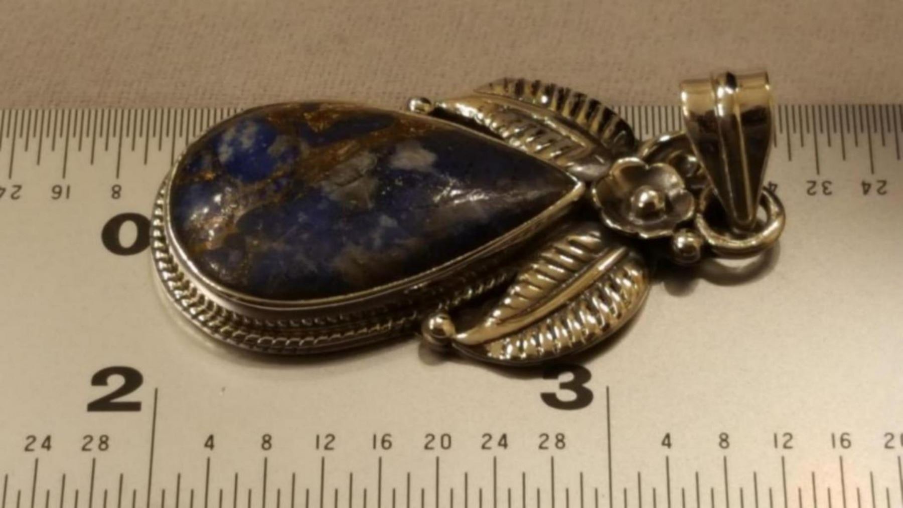 Beautiful Southwest - Afghani Copper Lapis Pendant. Gem Wt Approx 10 ct. Mounted In Elaborately Designed Solid .925 Sterling Silver. Incudes 20 " Chain. Tcw 69.5 or 13.9 Total Gram Wt.