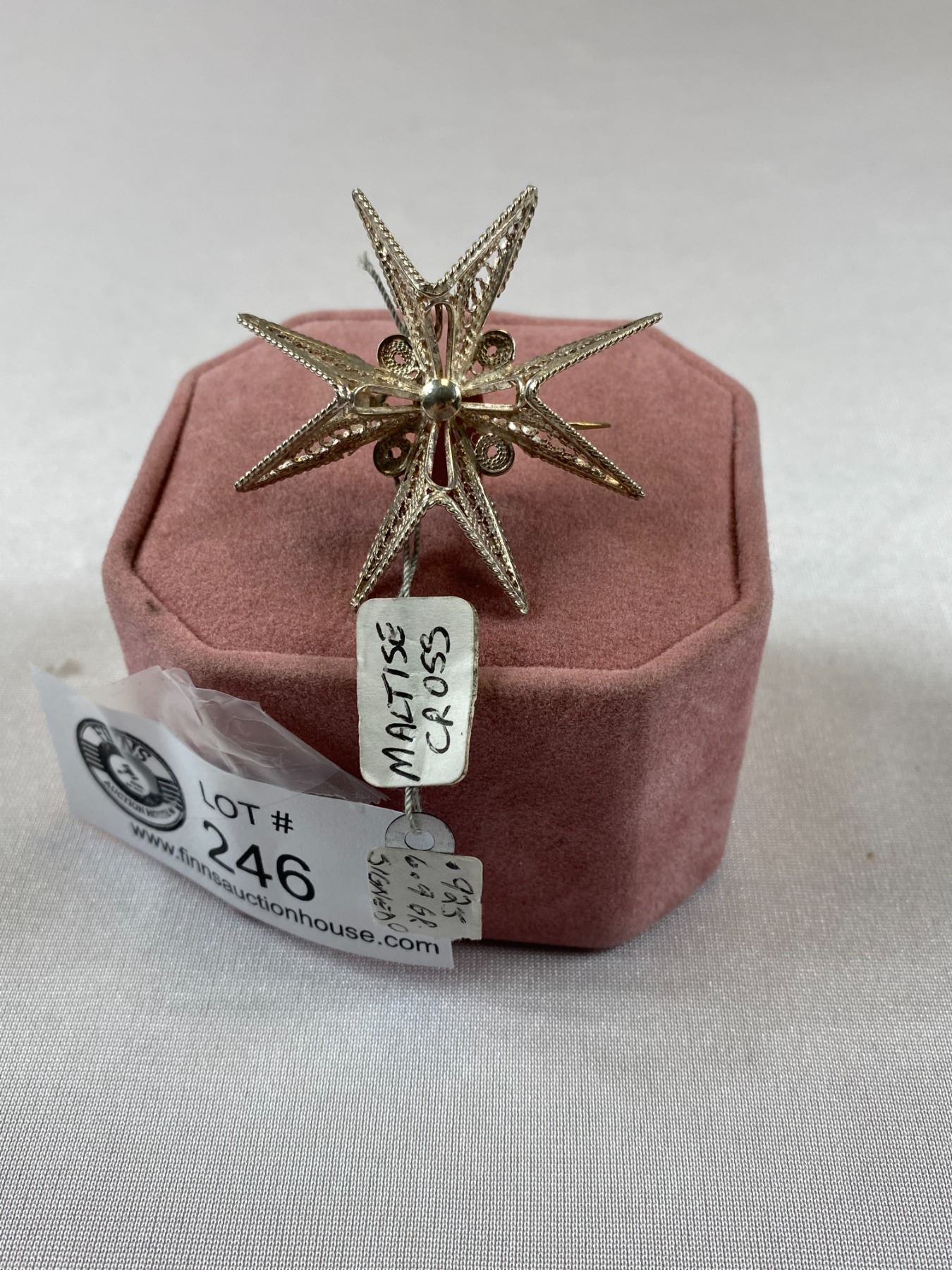 Beautiful Sterling Silver Marked .925 Maltese Cross Brooch/Pendant, Signed CA