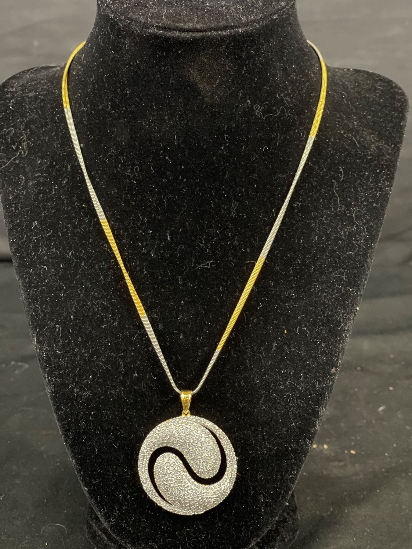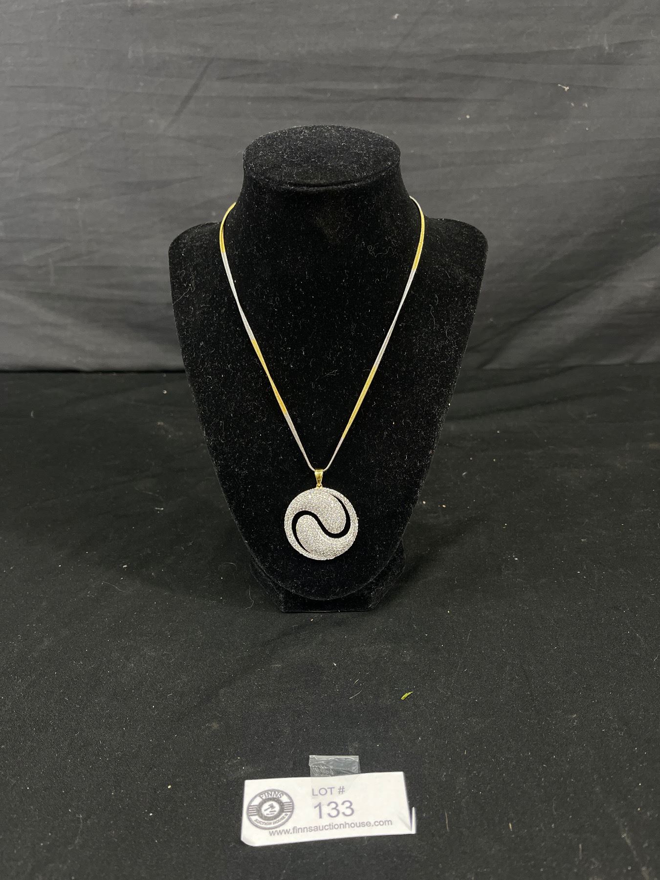 Beautiful Two Tone w/Lot Of Tiny Diamonette Stones. Ying Yang Pendant w/Chain