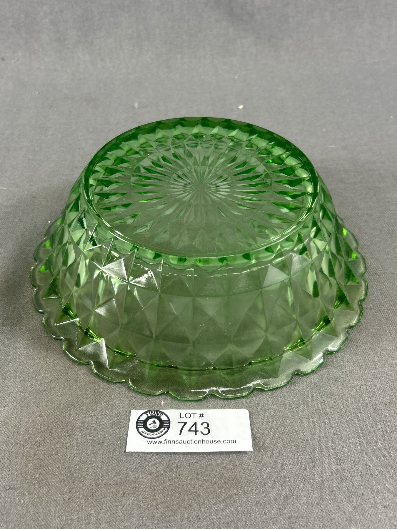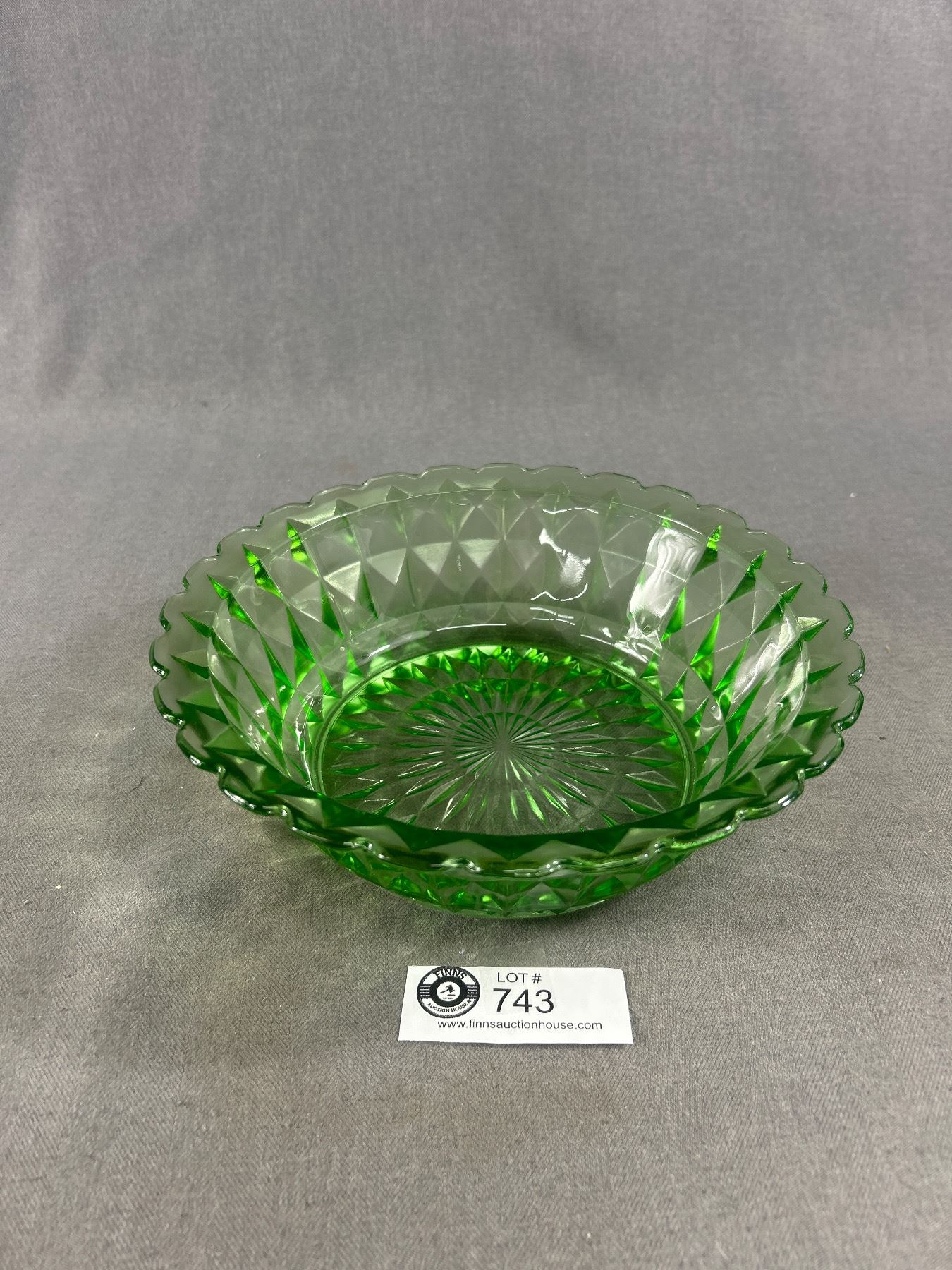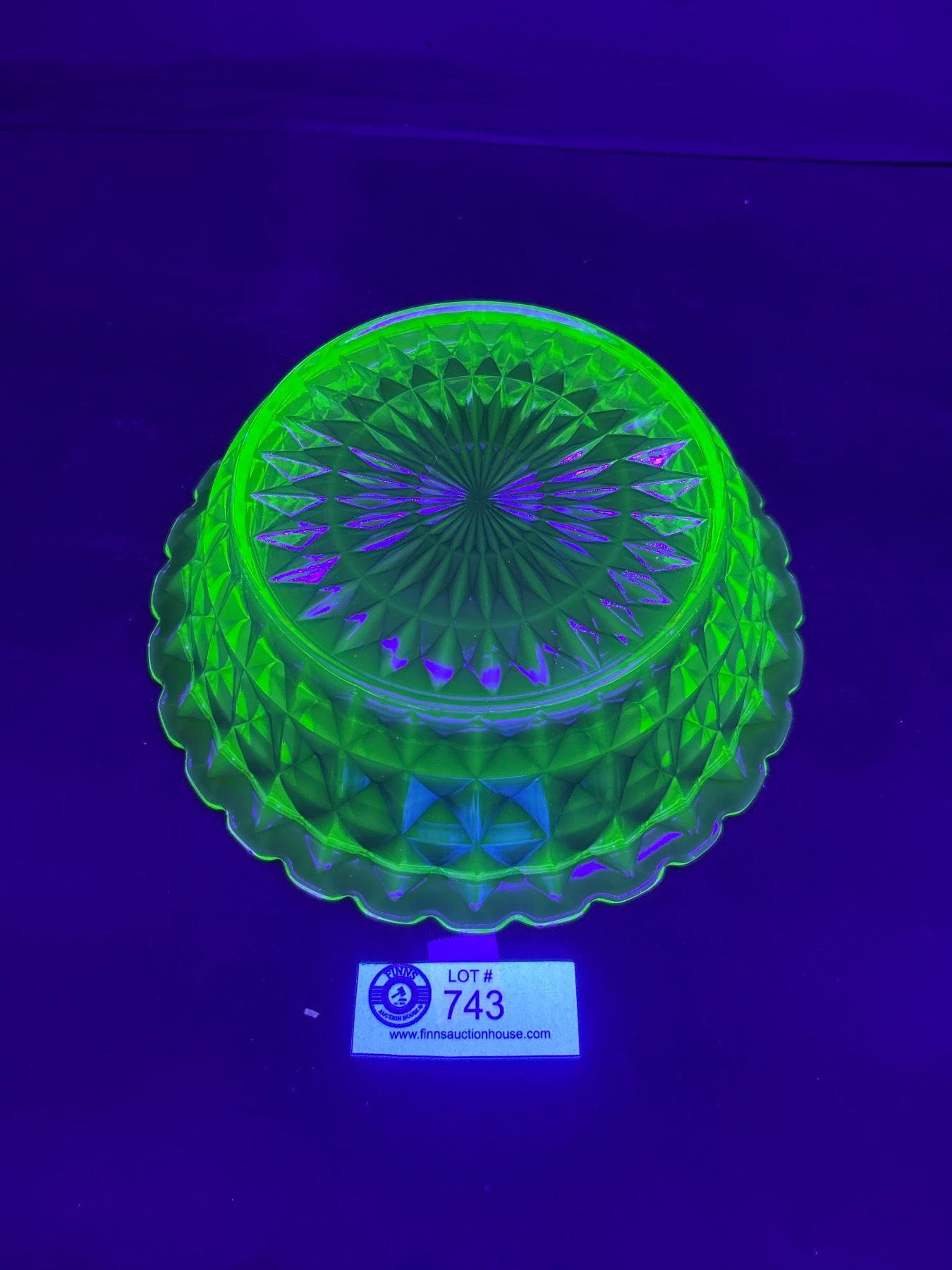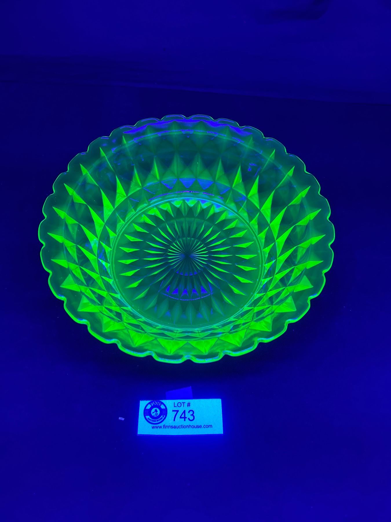 Beautiful Uranium Glass Bowl With Diamond Pattern