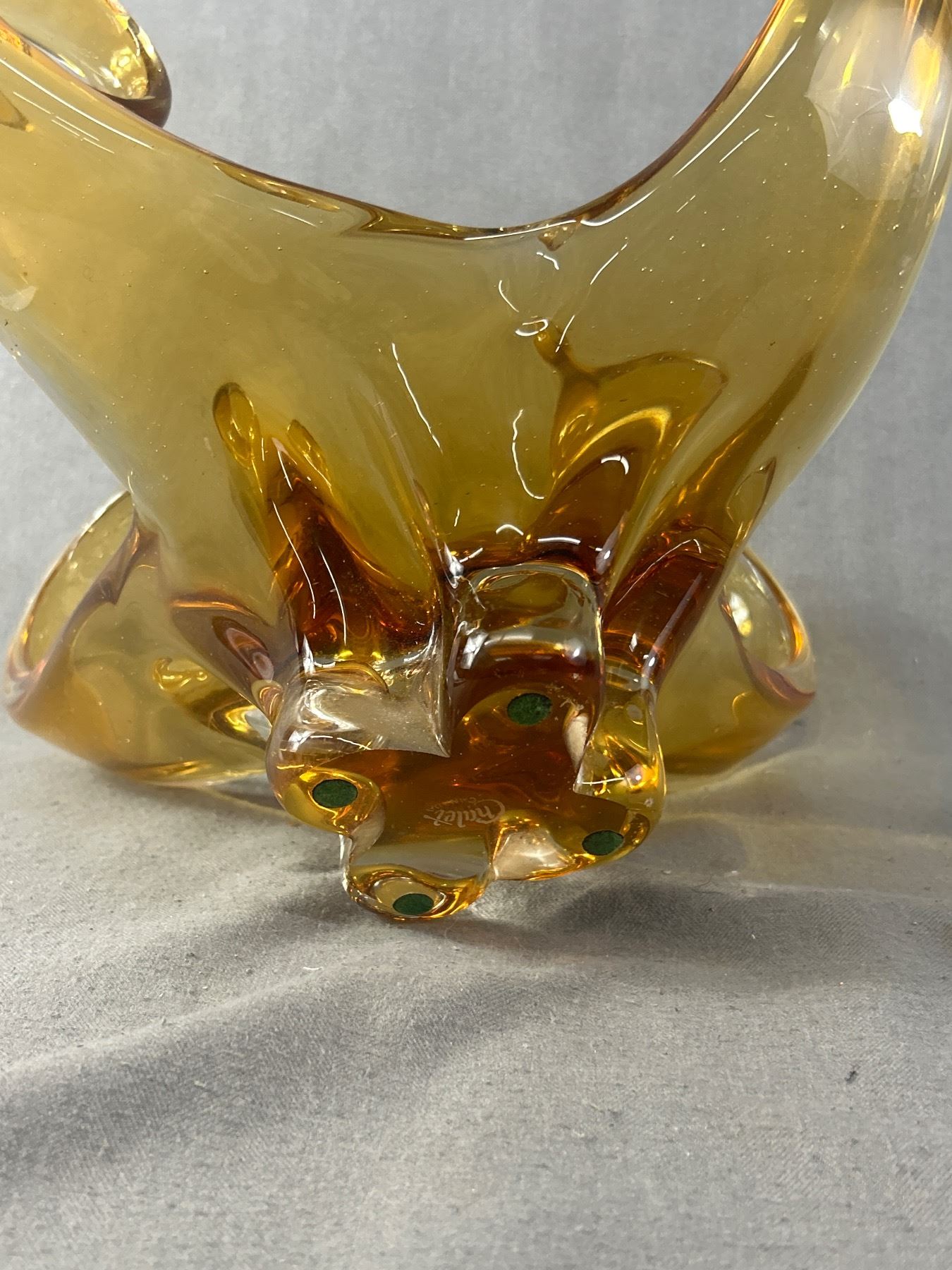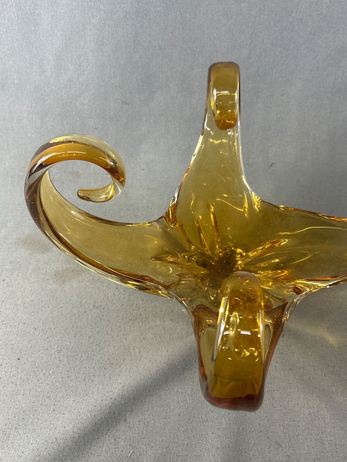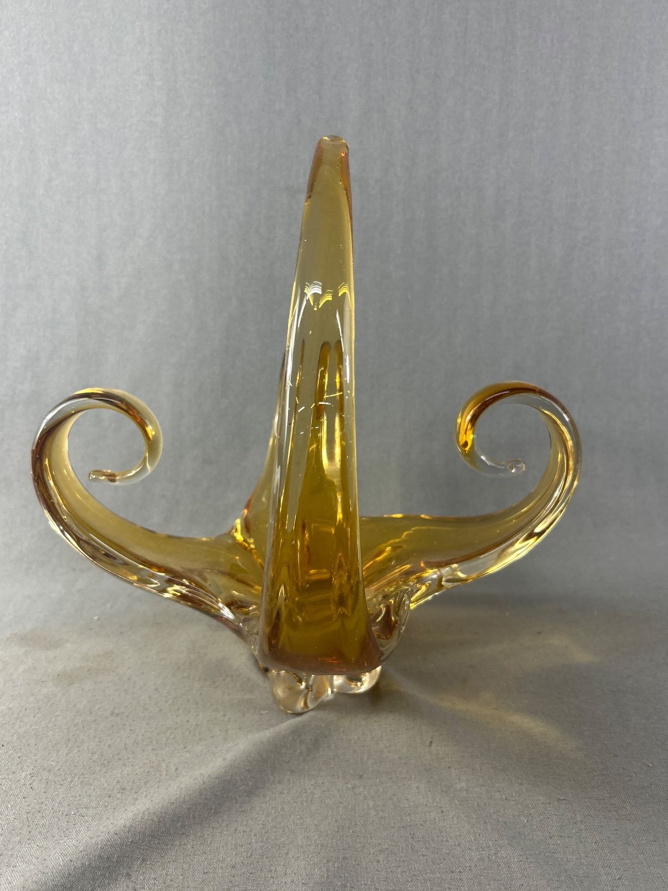 Beautiful Vintage Amber Coloured Chalet Art Glass. NO SHIPPING. Approx. 15" x 15.5" H