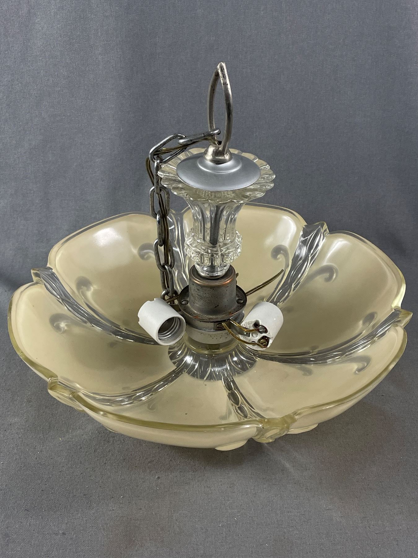 Beautiful Vintage Art Deco 3 Bulb Hanging Glass Fixture. Approx. 15" Diam