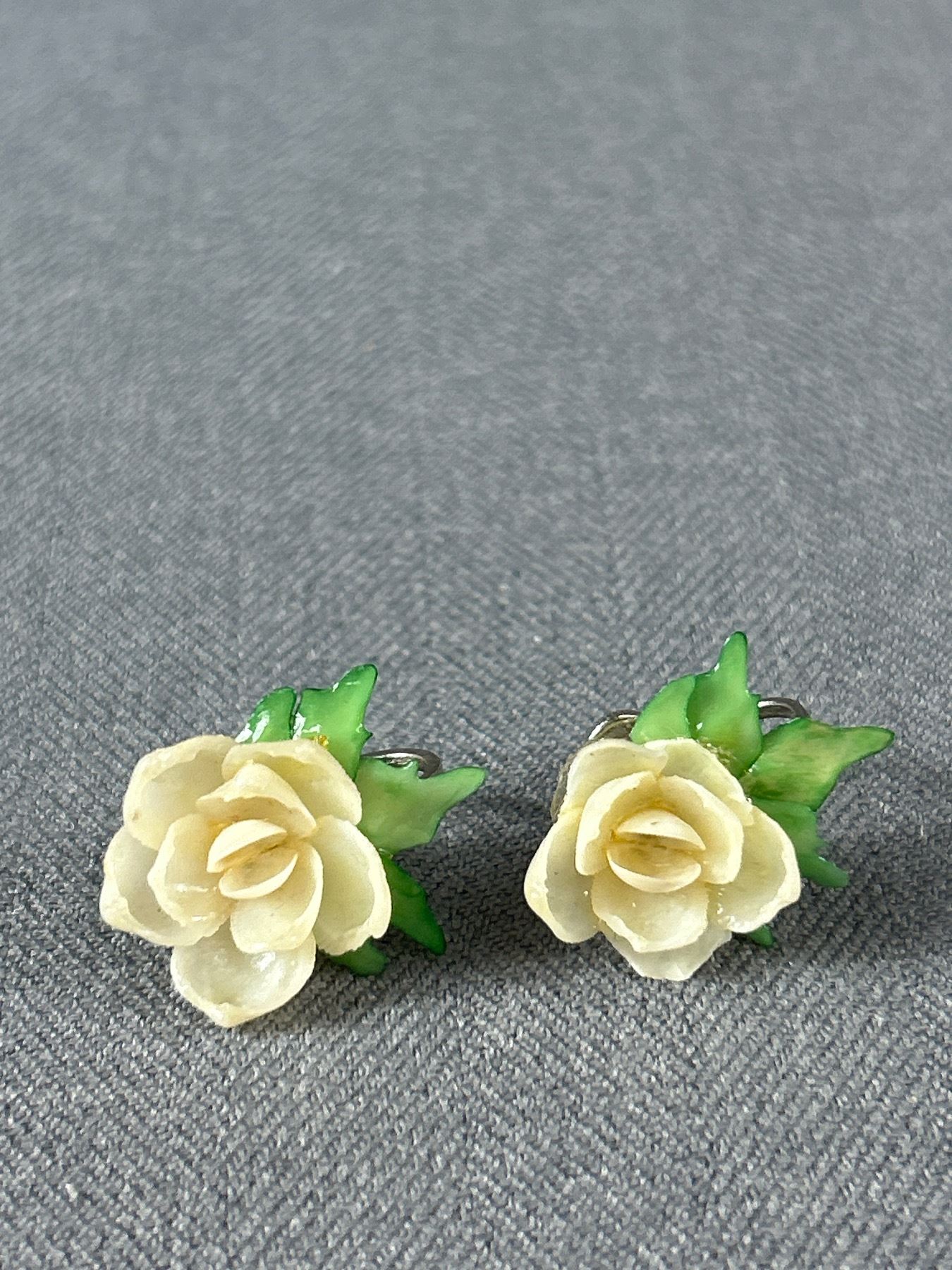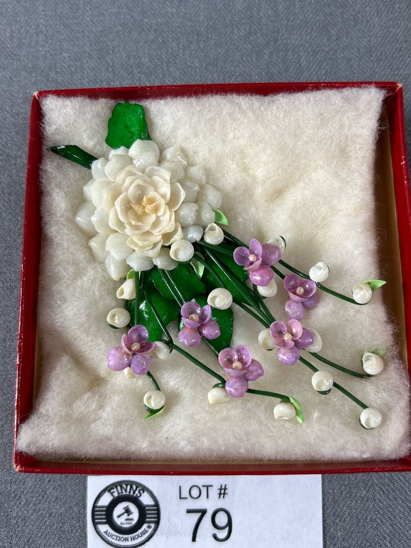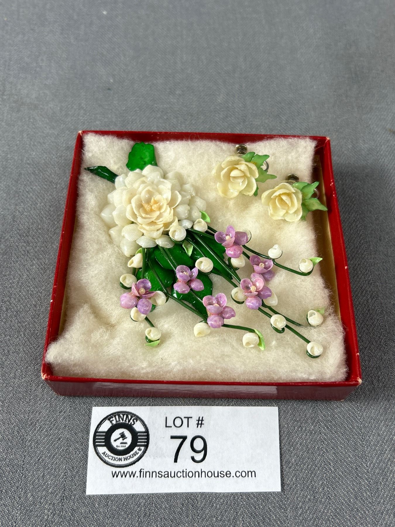 Beautiful Vintage Ceramic Brooch Set With Earrings