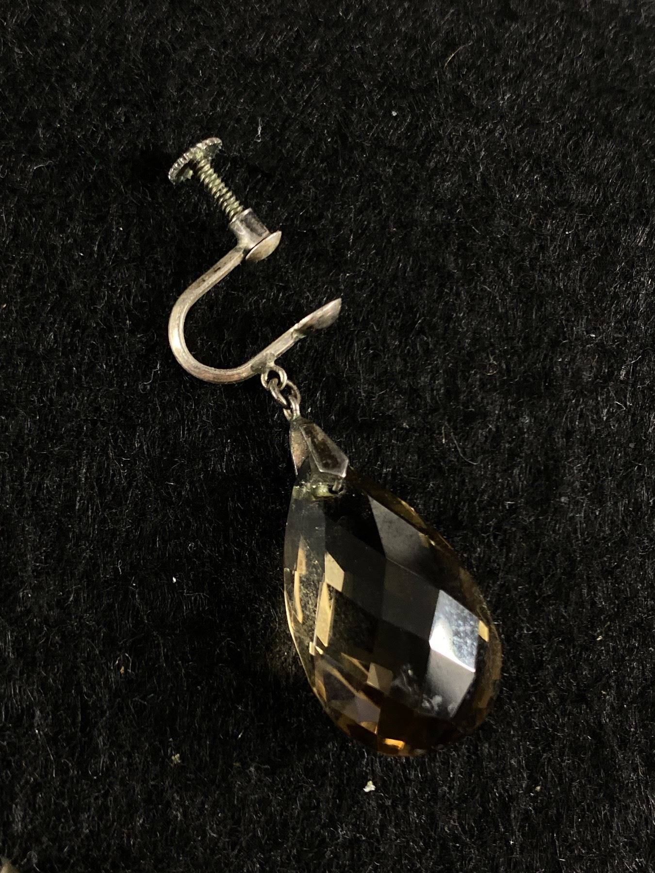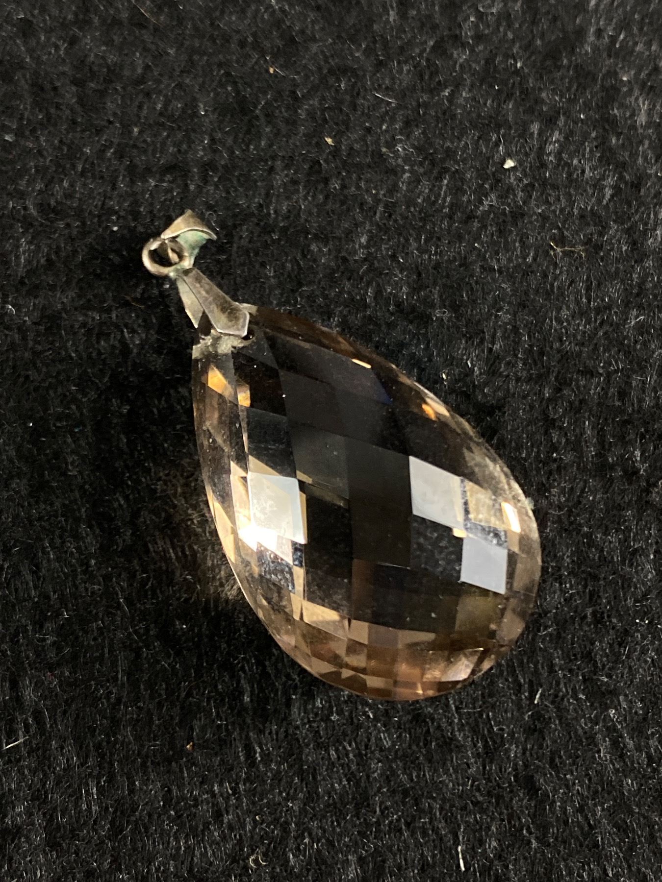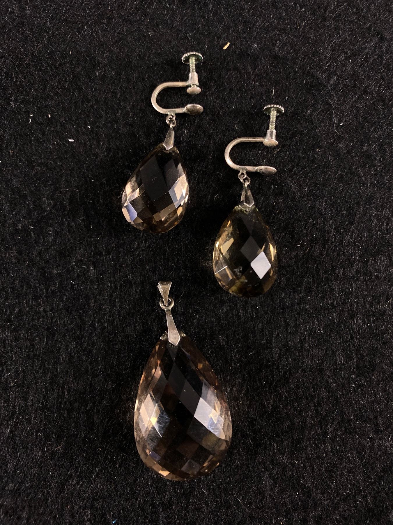 Beautiful Vintage Cut Smokey Top Pendant & Earrings. Earrings Marked Silver