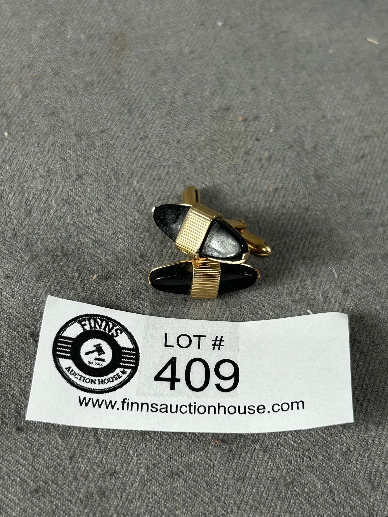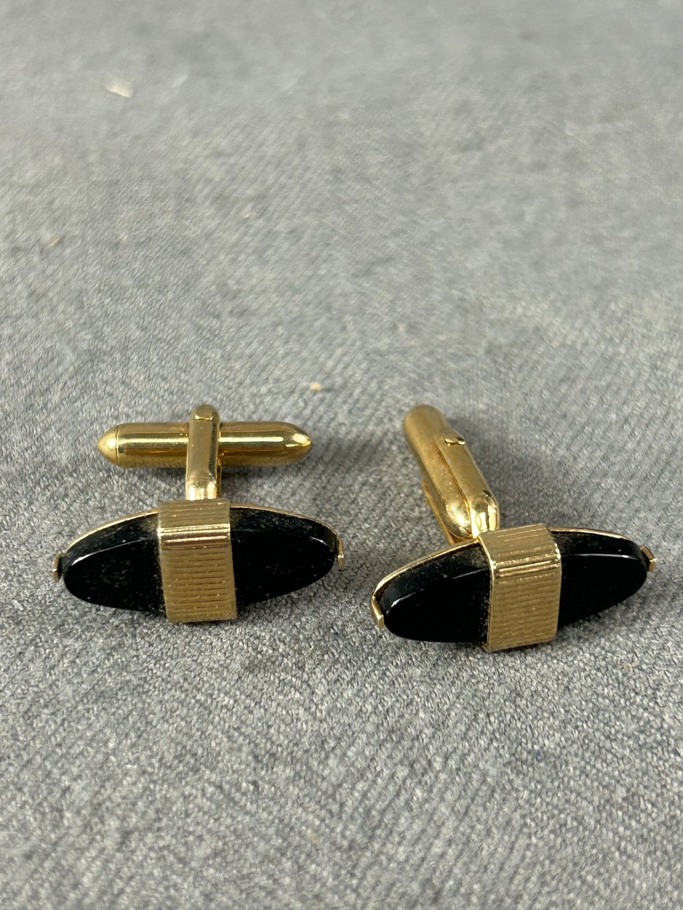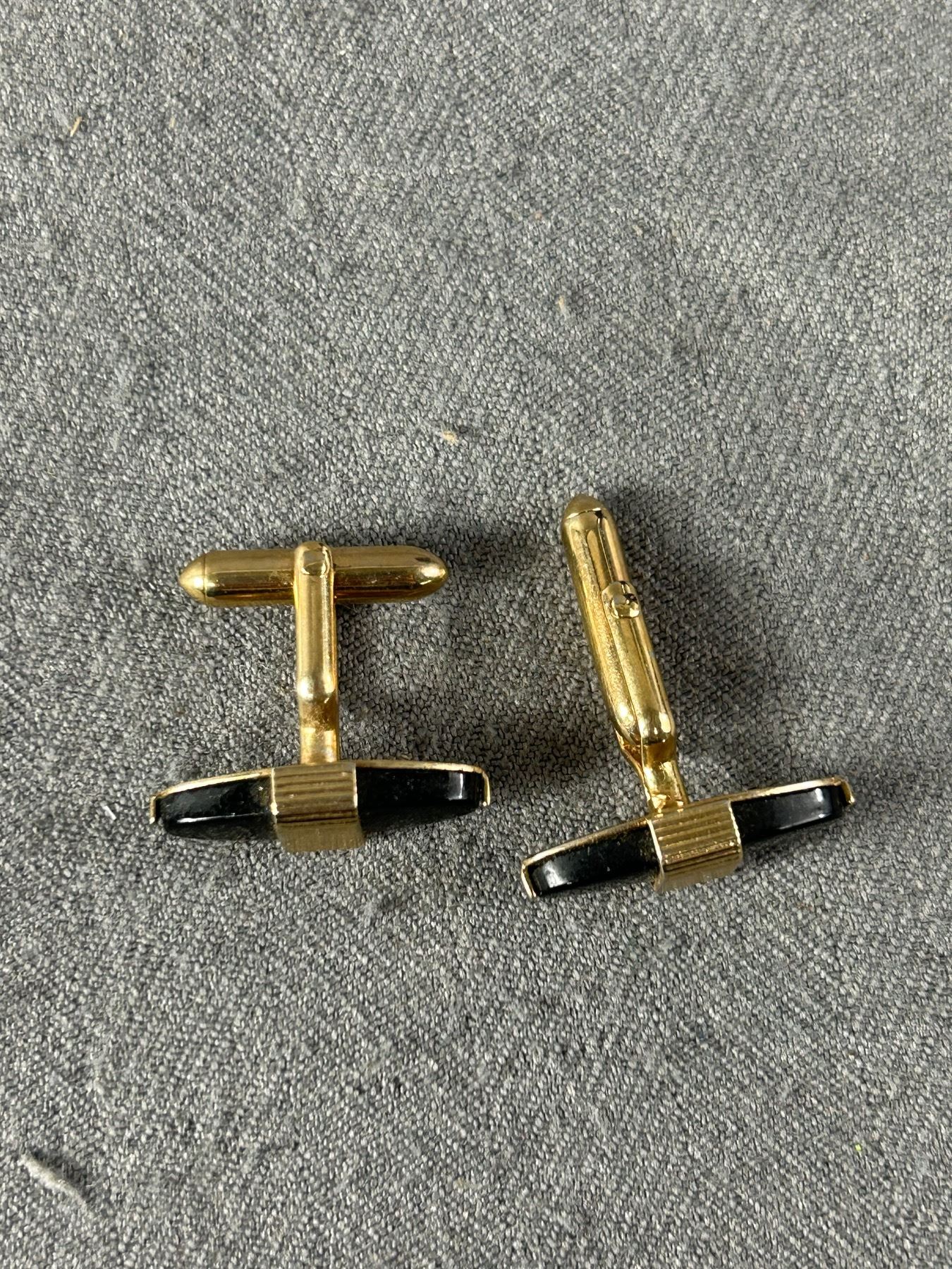 Beautiful Vintage Gold Tone Onyx Cufflinks