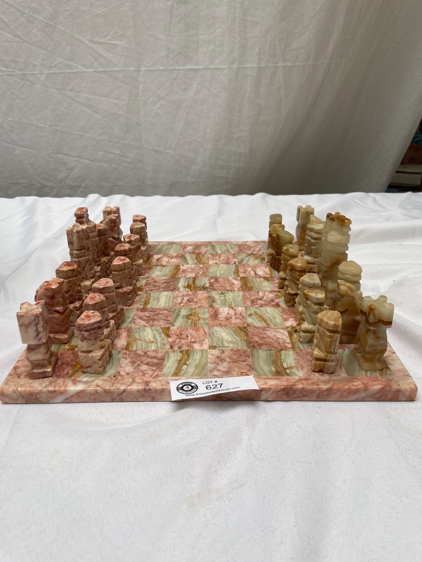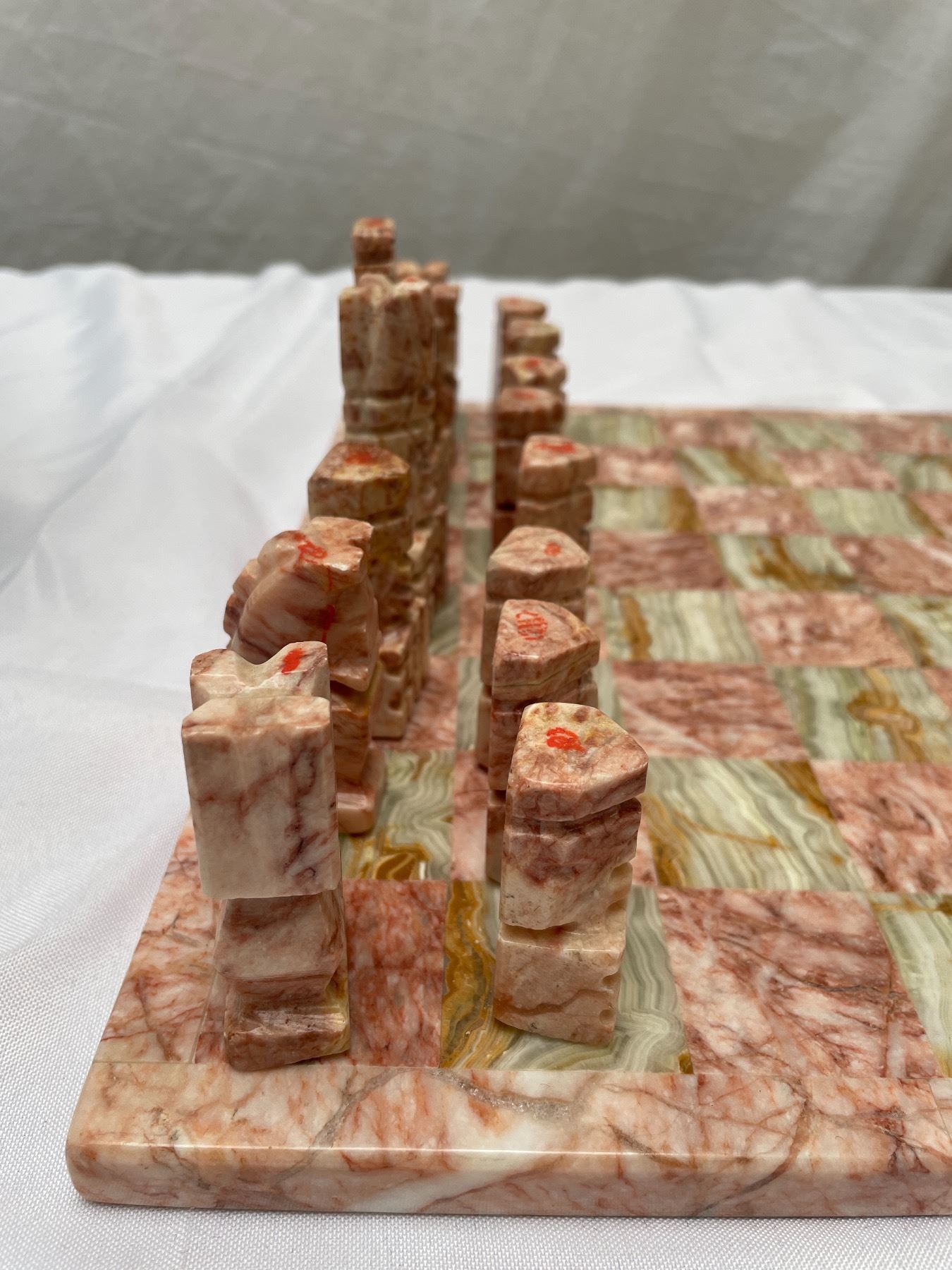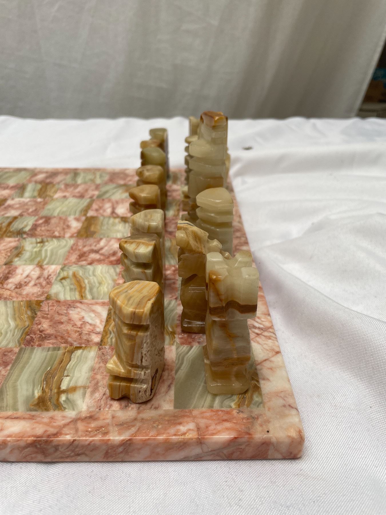Beautiful Vintage Hand Carved Onyx / Marble Chess Set and Board. Complete