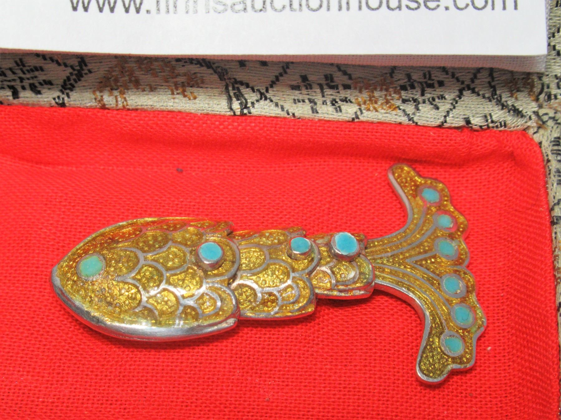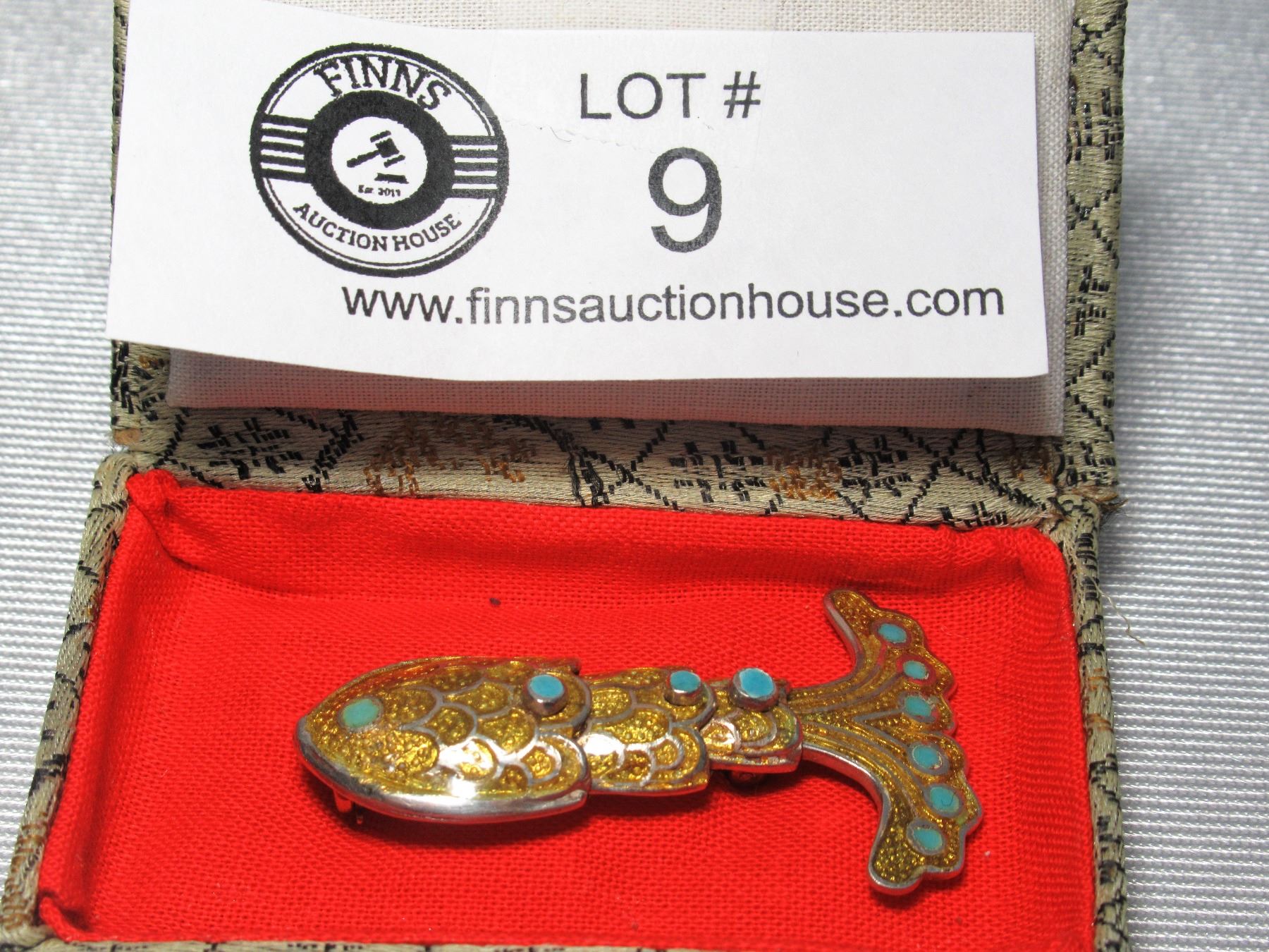 Beautiful Vintage Margot De Taxco Sterling Silver Enamel Fish Pin 1960's. Measures just under 2" L