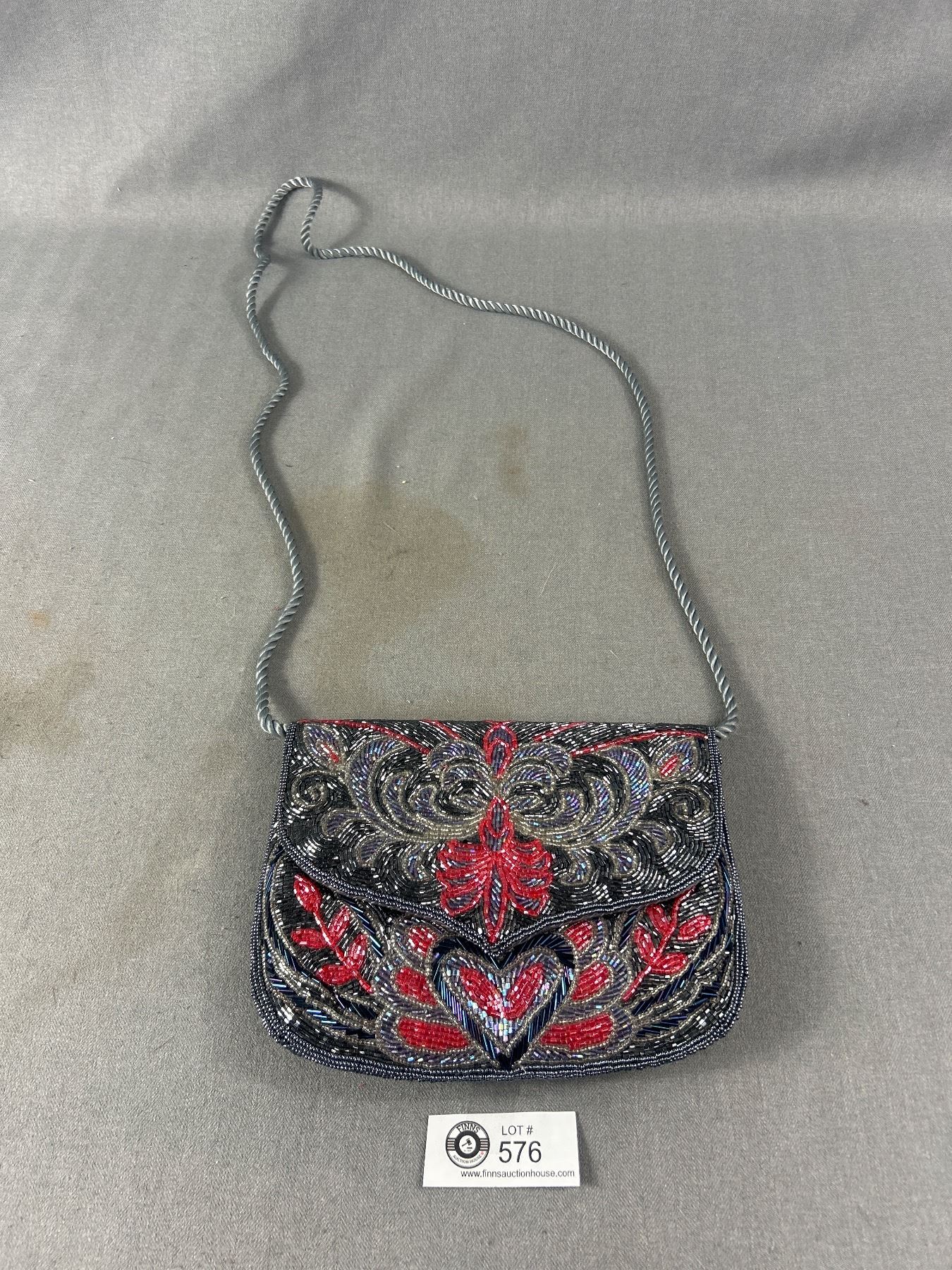 Beautiful Vintage Multicoloured Beaded Purse with Intricate Design. Very Clean. In Very Good Shape