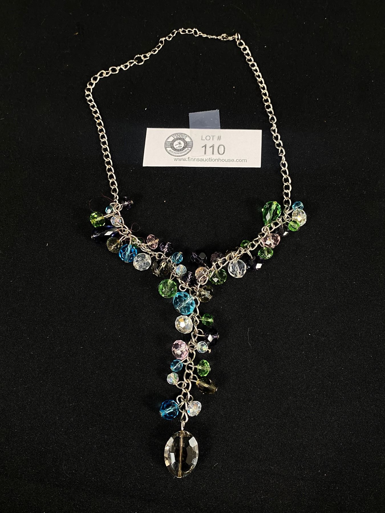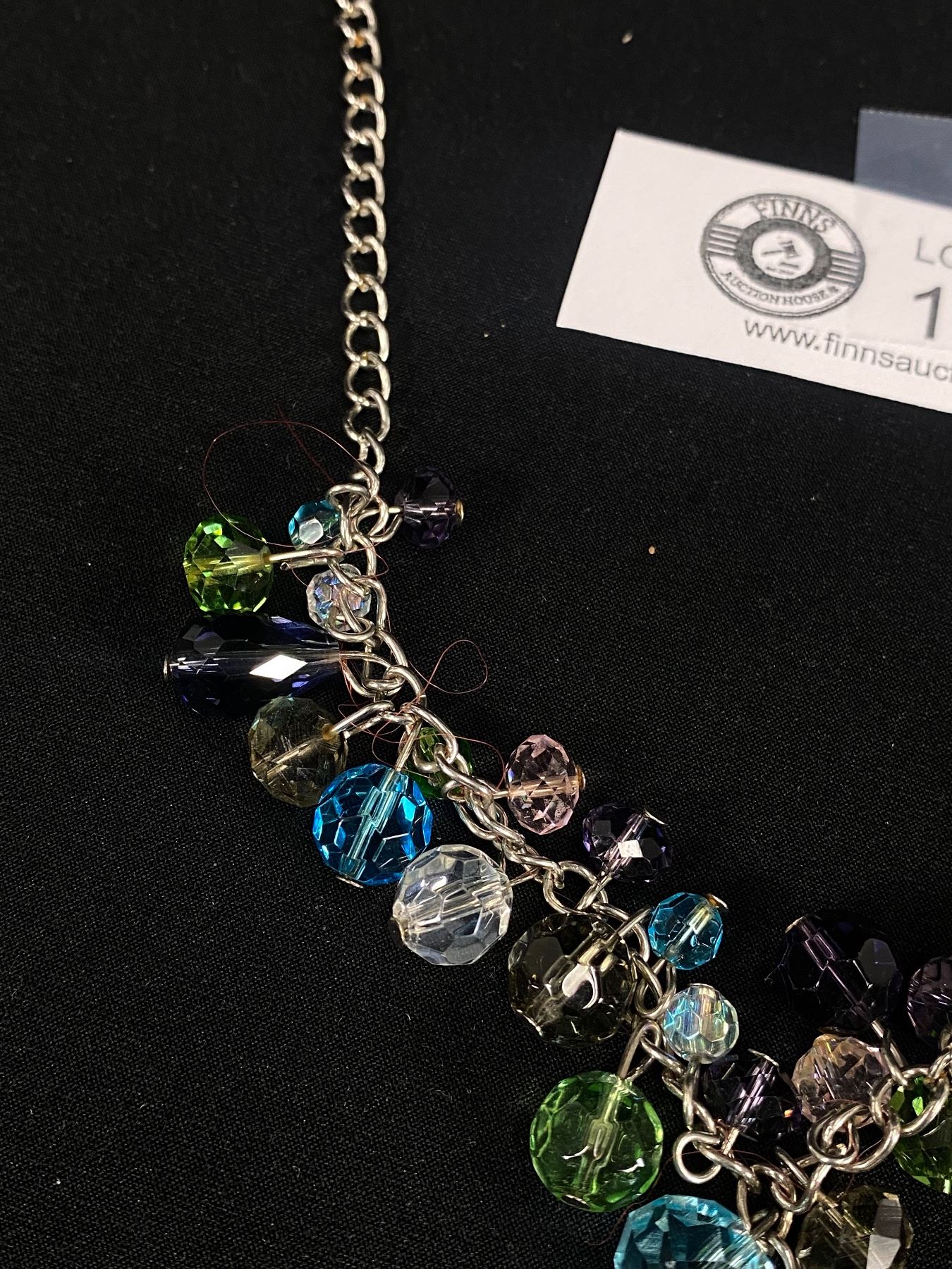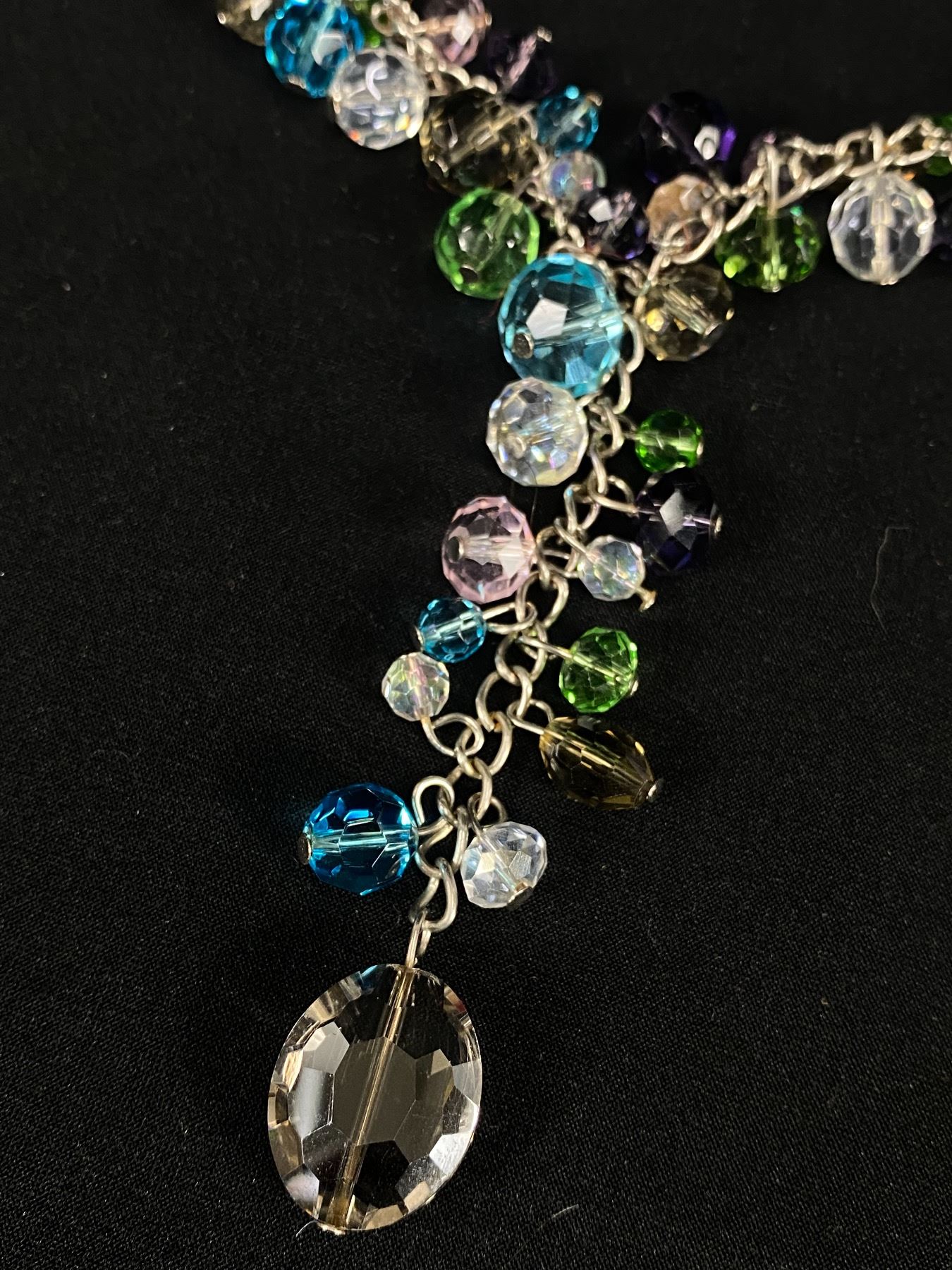 Beautiful Vintage Silvertone Necklace with Lots of Colourful Glass Beads Dangling