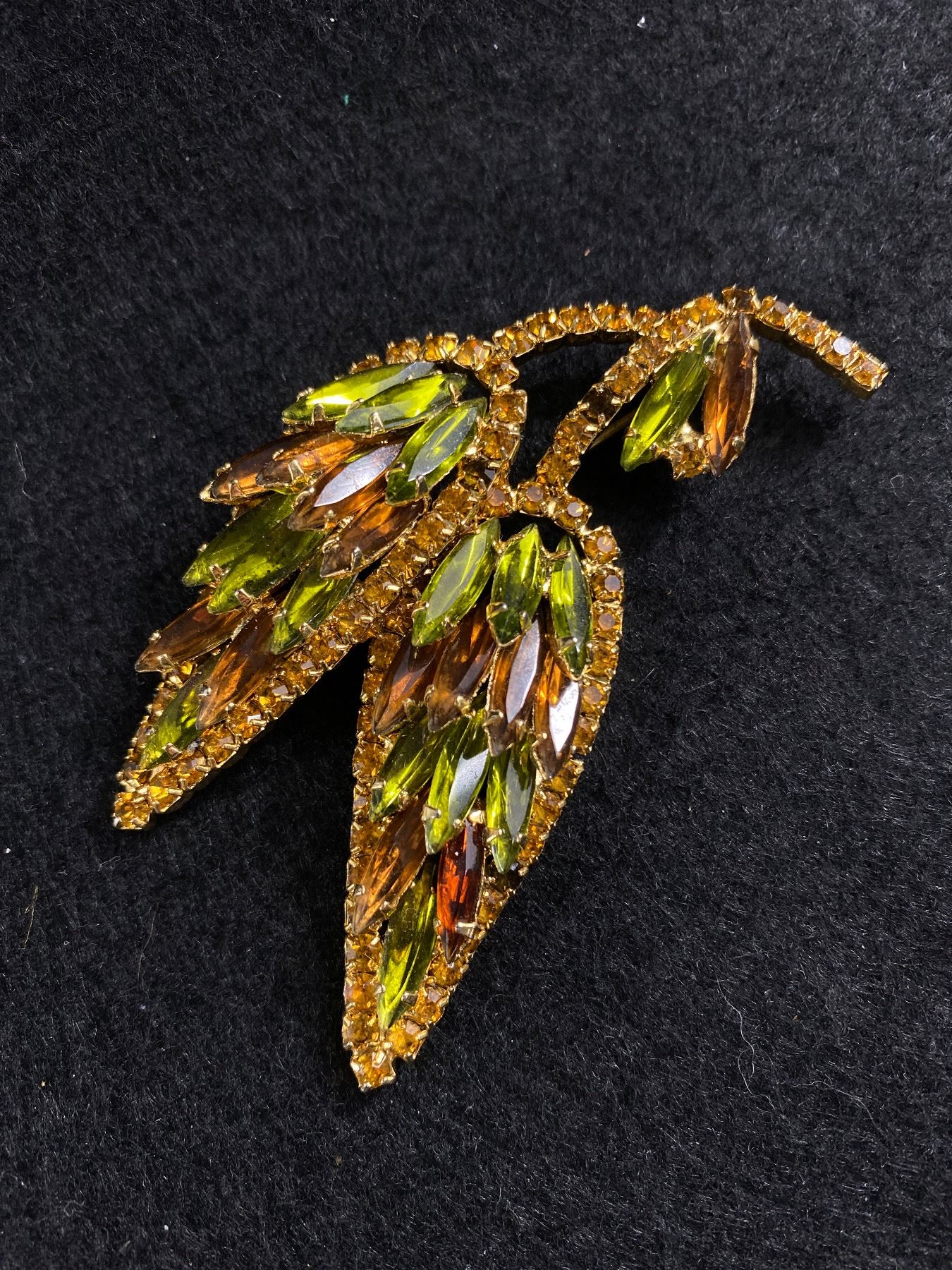 Beautiful Vintage Topaz and Lime Green Crystal Brooch. Stunning!
