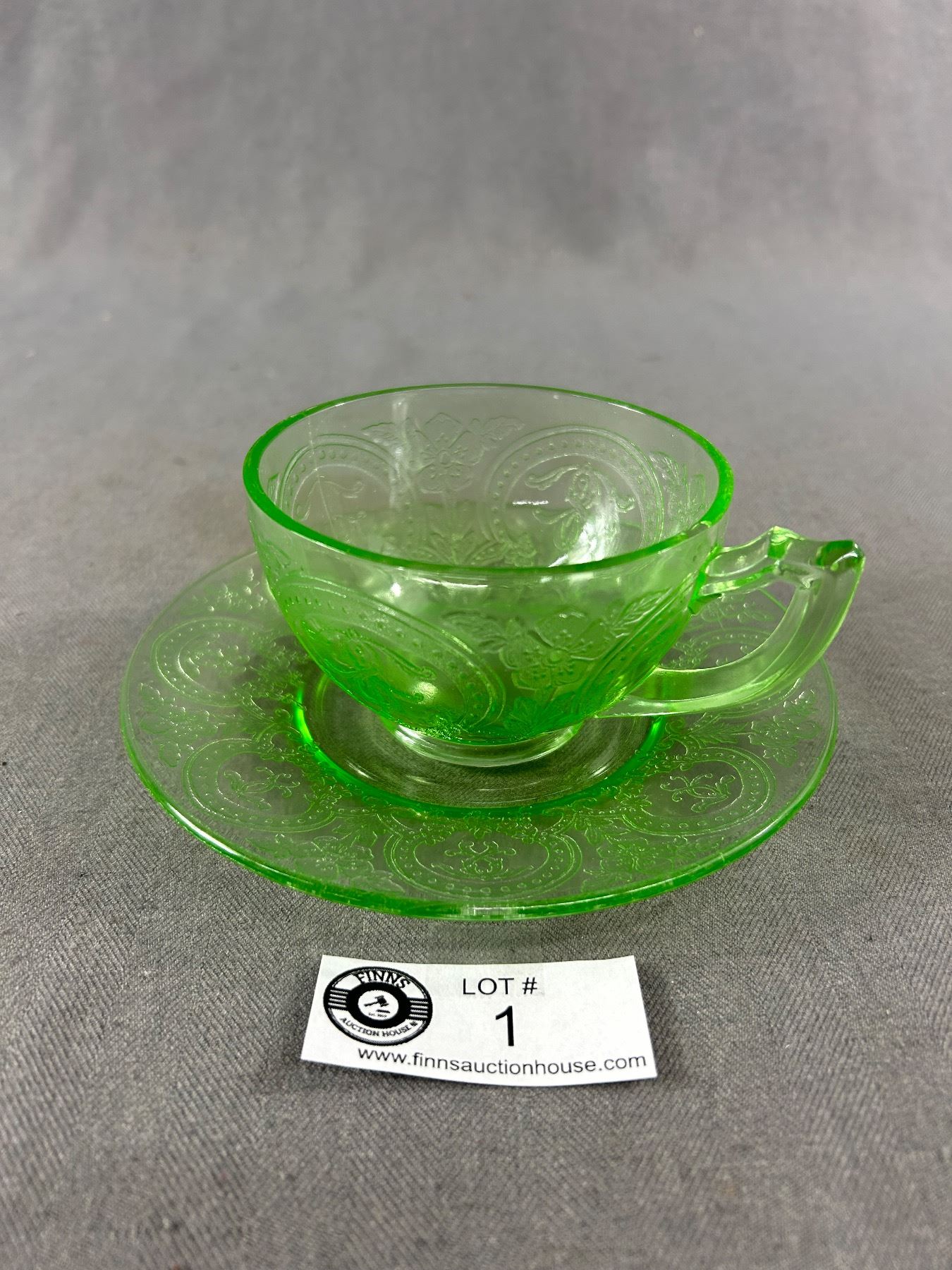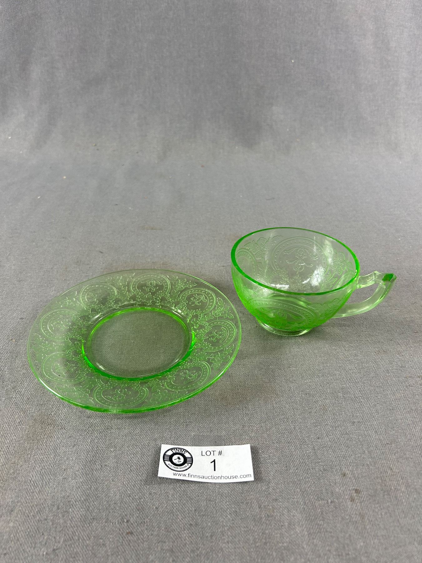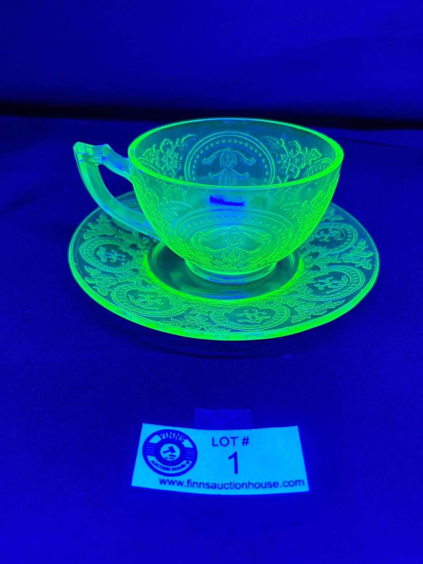Beautiful Vintage Uranium Glass Cup & Saucer