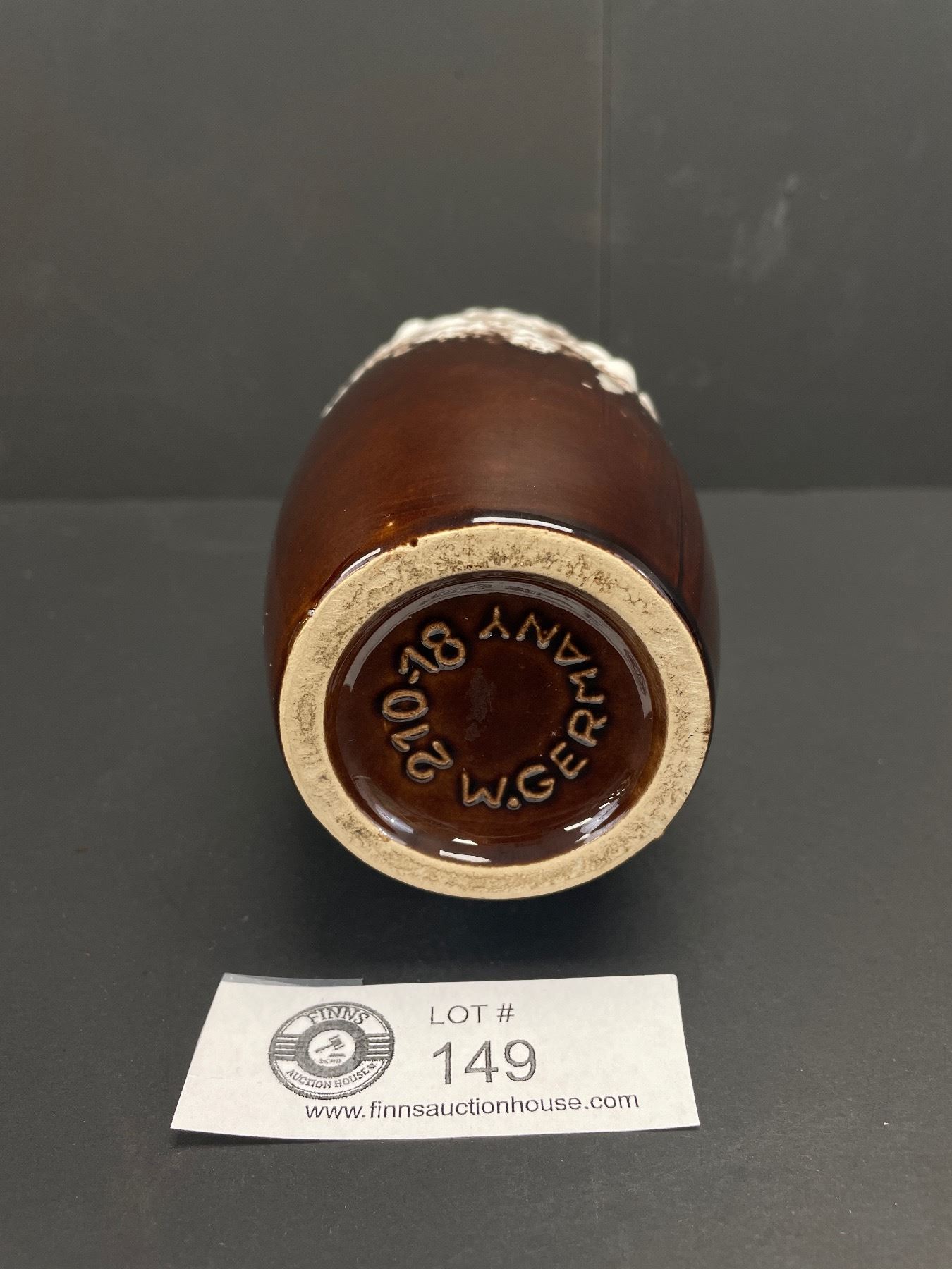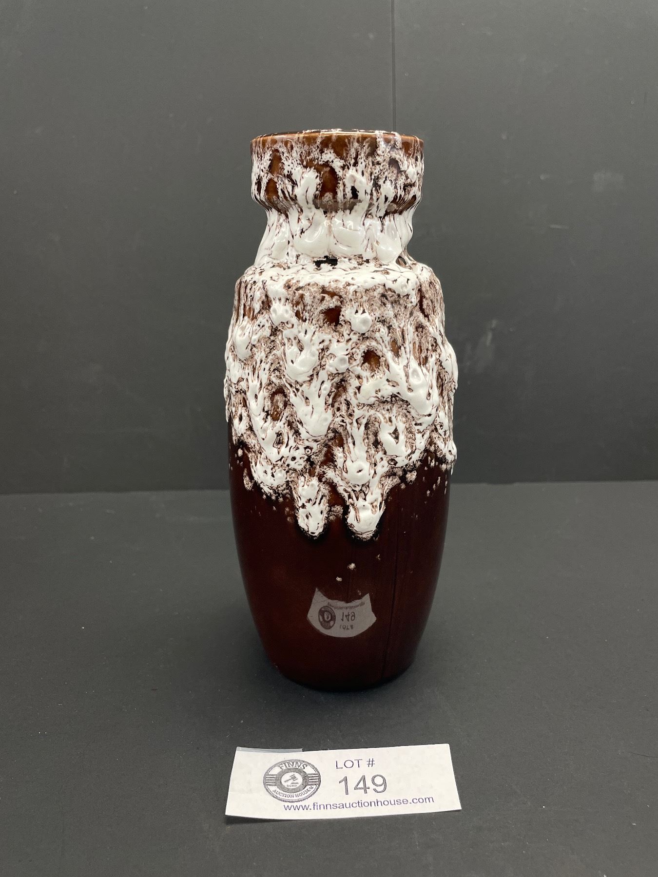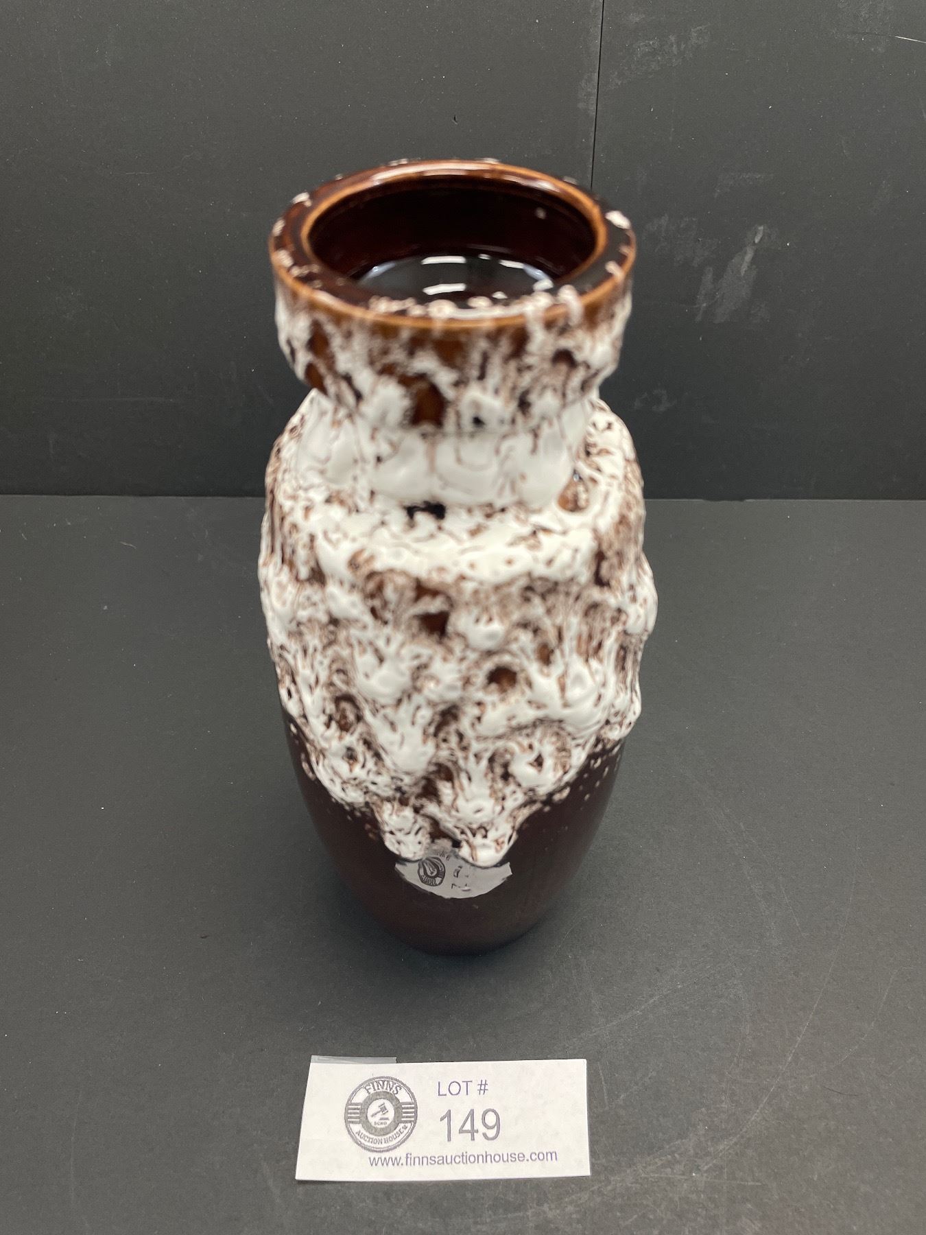 Beautiful White Lava Look Pouring onto Chocolate Brown West German Vase 7.5"
