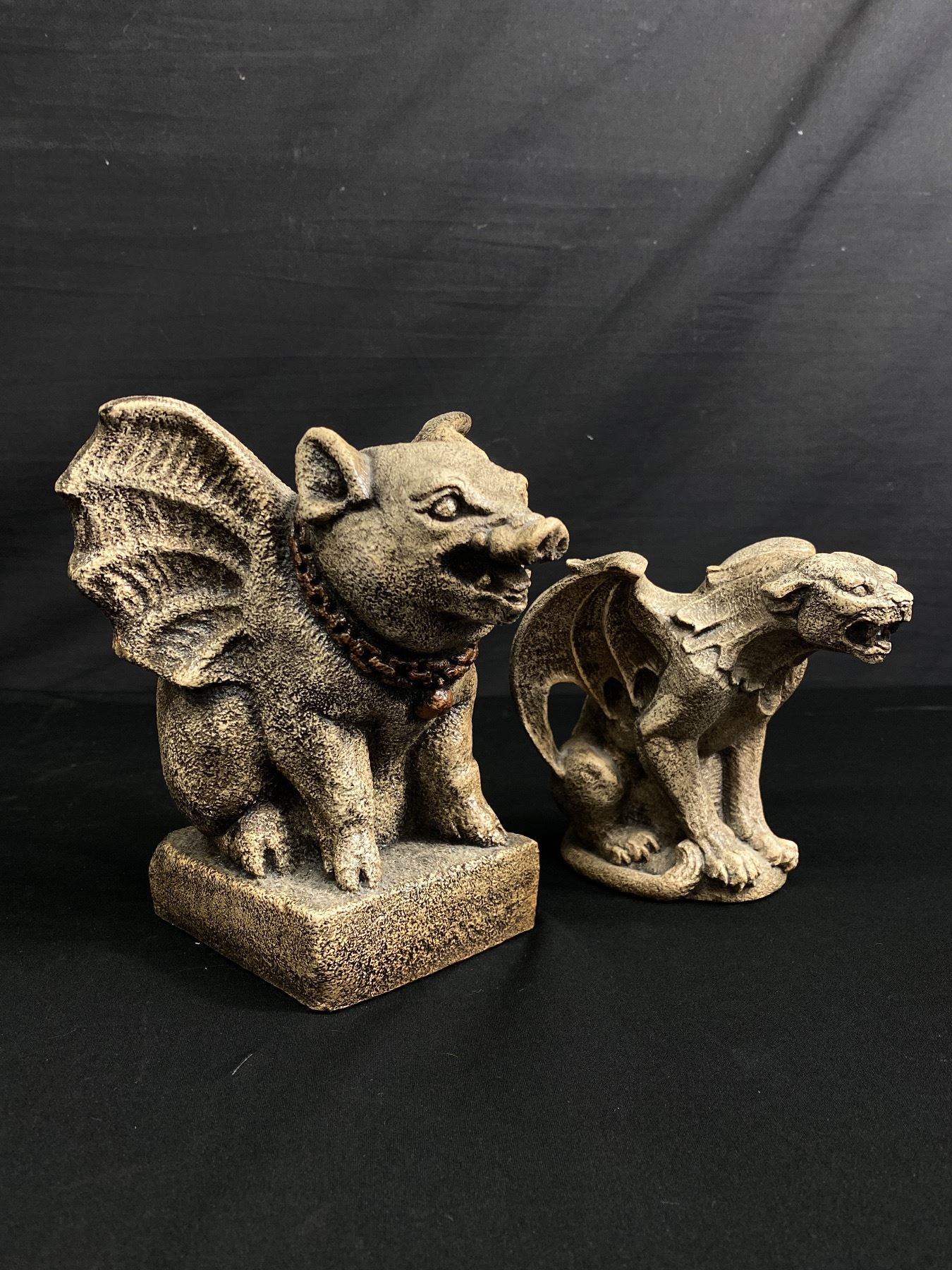 Beautiful Windstone Editions Gargoyle Pig Sculpture & Smaller Gargoyle Panther. No Chips Or Cracks